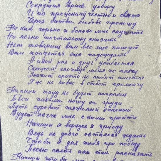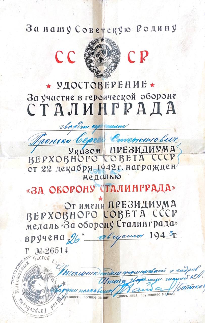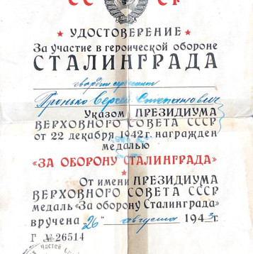 Дата и место рождения: 20 марта 1916 г., город Кронштадт. Дата и место призыва: Лето 1941 г., город Кронштадт. Народное ополчение. Командир разведгруппы. Снайпер-истребитель. Многократные успешно проведённые походы за линию фронта. После ранения и переформирования подразделения зачислен в 85-й Московский Гвардейский комсомольский минометный полк «Катюш» Гвардейских минометных частей Резерва Главного командования СССР. Воинское звание - Гвардии сержант. Помощник командира взвода Боевой путь Ленинградcкий фронт, Воронежский фронт, Донской фронт, Сталинградская битва, г.Калач, р. Северный Донец, Курская битва, , Брянский фронт, 1-й и 2-й Прибалтийский фронт (г.Даугавпилс). Летом 1945 года переброшен на Дальний Восток (2-й Дальневосточный фронт) для участия в разгроме Квантунгской армии Японии. Награжден медалями: “За Боевые заслуги», «За оборону Ленинграда», «За оборону Сталинграда», «За Победу над Германией», «За Победу над Японией», Орденом "Отечественной войны I степени". Благодарности от Верховного Главнокомандующего за отличные боевые действия в боях : 1. При ликвидации окружённых войск под Сталинградом, 02 февраля 1943г. 2. При разгроме немцев под Сталинградом, 25 февраля 1943г. 3. За освобождение г. Орёл, 05 августа 1943 г. 4. При освобождении г. Брянск и г. Бежица, сентябрь 1943 г. 5. При прорыве вражеской обороны южнее г. Невель, 04 ноября 1943 г. 6. При прорыве вражеской обороны западнее г. Новосокольники, 13 июля 1944г. 7. За освобождение г. Двинск, 27 июля 1944г. 8. За освобождение г. Риги, 13 октября 1944г. После демобилизации работал модельщиком (конструктором прототипов) высшей квалификации на военном заводе вплоть до выхода на пенсию.