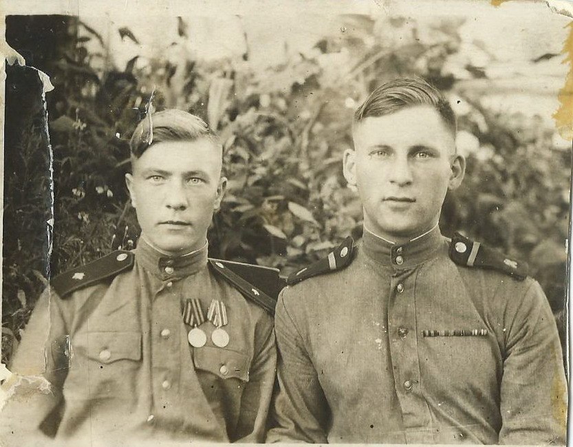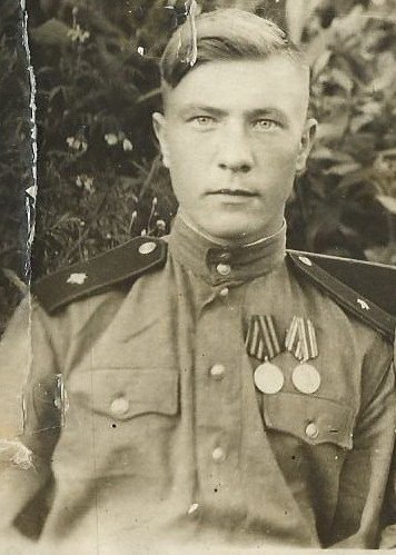 Мой дед, Пудов Евгений Дмитриевич, родился 5 июня 1925 года в деревне Плеханово Ленинградской области. 5 июня 1943 года призван на воинскую службу. Участвовал в Нарвской наступательной операции, где был ранен, но обеспечил связь, за что был награждён медалью "За Боевые Заслуги". После госпиталя участвовал в освобождении Китая от оккупации милитаристской Японией. 26 апреля 1948 года был уволен в запас. В армии мой дед получил специальность шофёра. В мирное время он работал водителем в разных организациях. За свой труд мой дед награждён медалью "Ветеран Труда". 25 февраля 1957 года мой дед женился на моей бабушке Пудовой(Тебряевой) Любови Егоровне. У них родились три дочери: моя мать Зоя, Татьяна и Людмила. На данный момент у моего деда 6 внуков и 8 правнуков.