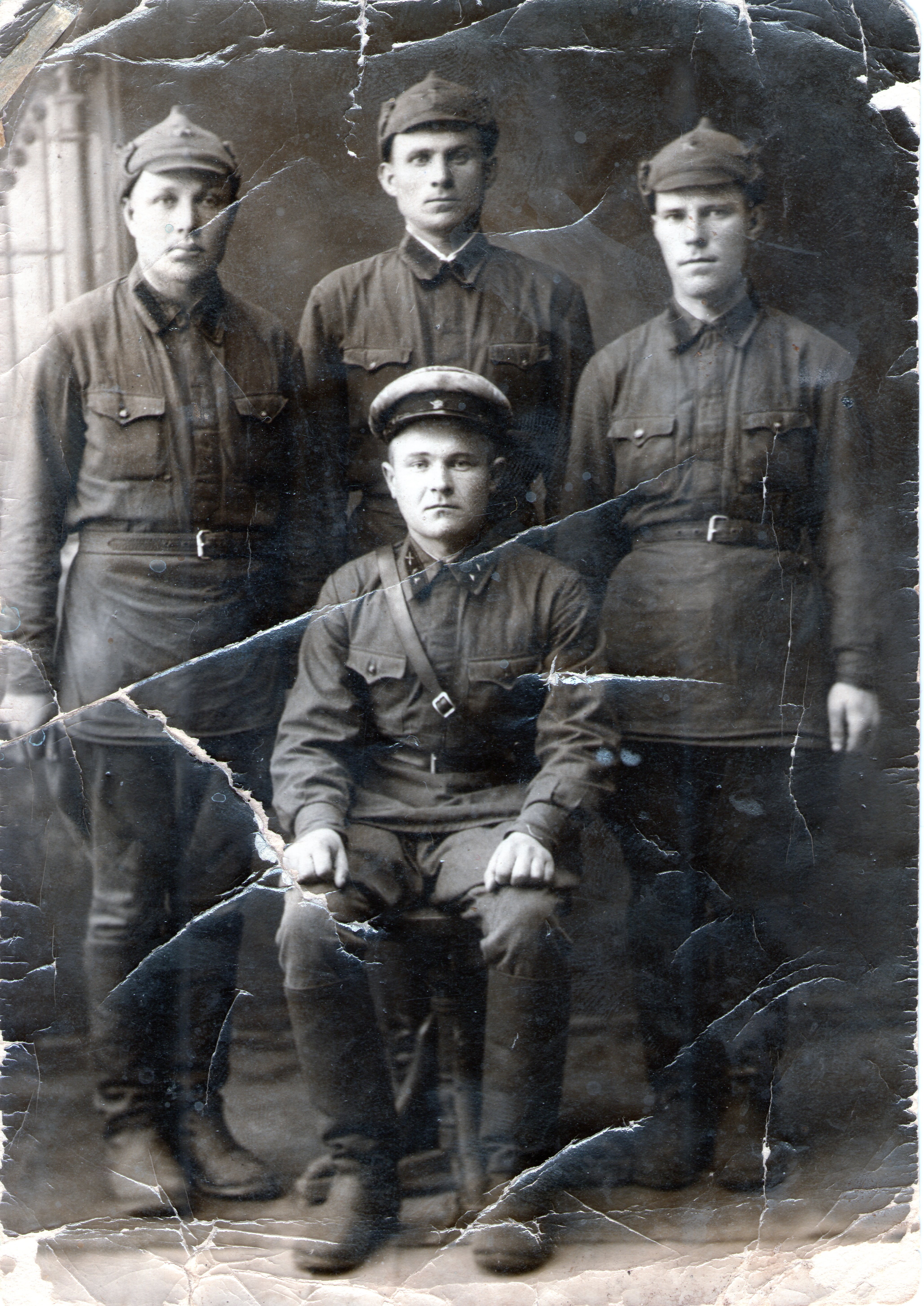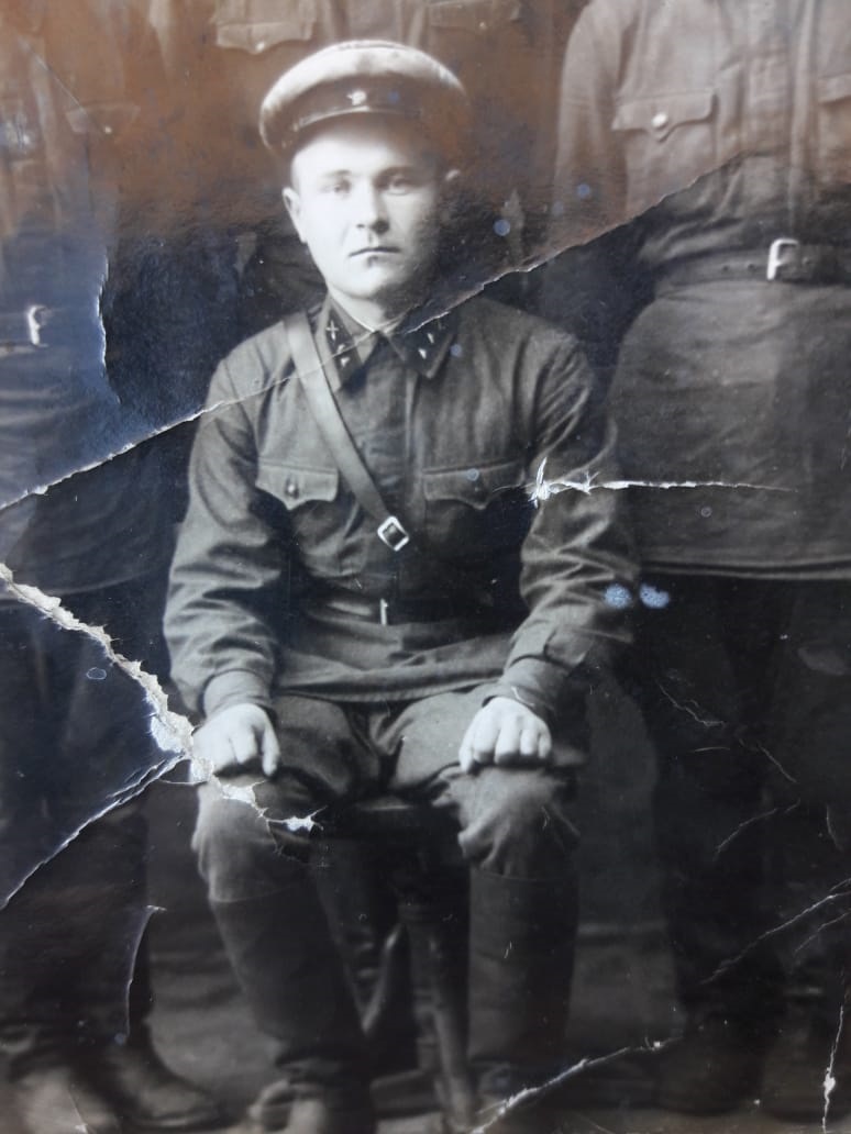 В 1938 г. Александра Ивановича забрали служить в Красную Армию. Службу он проходил в Луганске (Ворошиловграде). В марте 1941 г. он прислал письмо и фотографию, где изображен вместе со своими сослуживцами. Когда подходил к концу срок службы в армии, началась Великая отечественная война. И он сразу ушел на фронт. Так Александр Иванович не видел свою семью 7 лет.