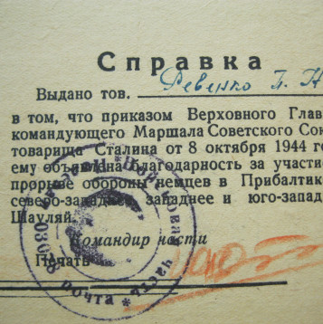 – 688 отд. батальон связи 54 стр. корпуса, 51 армия, 1-й ПРИБАЛТИЙСКИЙ фронт