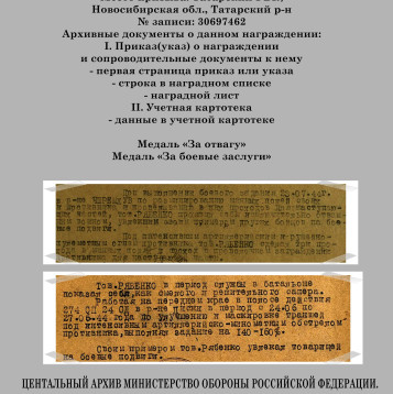Ранен 9июля 1943г. При разминировании минных полей проявил мужество и отвагу. Увлекая своим примером других бойцов на боевые подвиги. Награжден медалью «За отвагу», «За боевые заслуги», «За победу над Германией».