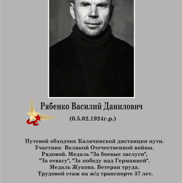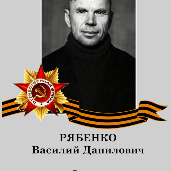 РЯБЕНКО ВАСИЛИЙ ДАНИЛОВИЧ-(1924г.р.) Участник Великой Отечественной войны. Сапер, 9 инженерно-саперной Проскуровской бригады. 133 инженерно-саперного