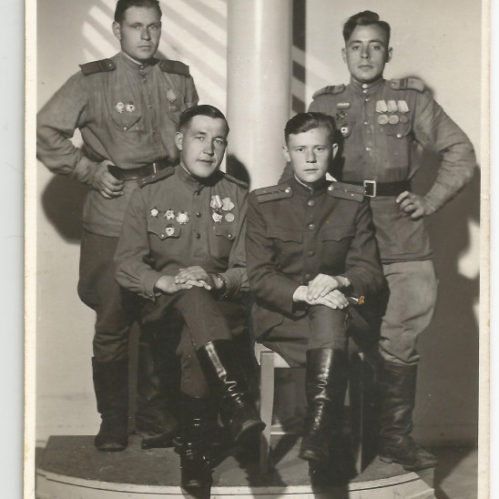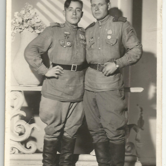 Мой дед Ряхин Григорий Петрович. 1920 года рождения, гв. сержант, в РККА с 1940 года. Место рождения: Башкирская АССР, Зианчуринский р-н, д. Ново-Петровск. С первых дней в Великой Отечественной Войне. Служил в 42 гвардейском Висленском стрелковом полку, 13-ой гвардейской стрелковой Полтавской ордена Ленина дважды Краснознамённая орденов Суворова и Кутузова дивизии.Трижды ранен. Судя по фото и наградным листам с сайта "Подвиг народа", награжден орденом "Красной звезды",хотя наградной лист на орден "Отечественной войны", но как написали с архива такое часто было, представляли к одному, а награждали другим орденом, на обороте отметка стоит об этом, дважды медалью "За Отвагу", медалью "За оборону Сталинграда",но не точно, документов нет, а на фото медаль есть, знаком "Отличник". Судя по боевому пути дивизии, побывал мой дед в самом пекле войны.Сталинград, Курская Дуга, Освобождение Украины, Наступательная операция на Берлин, освобождение Чехословакии.Один из снимков подписан, Чехословакия, Прага 25.06.1945 года, видать война для него не кончилась в мае 1945 года.Да уж, поносило моего деда по свету.