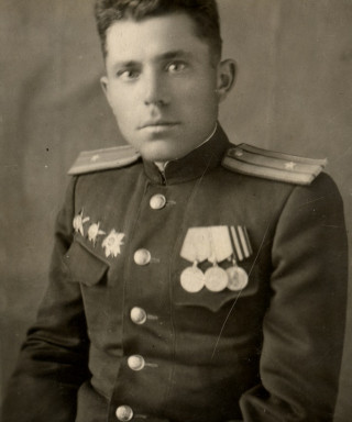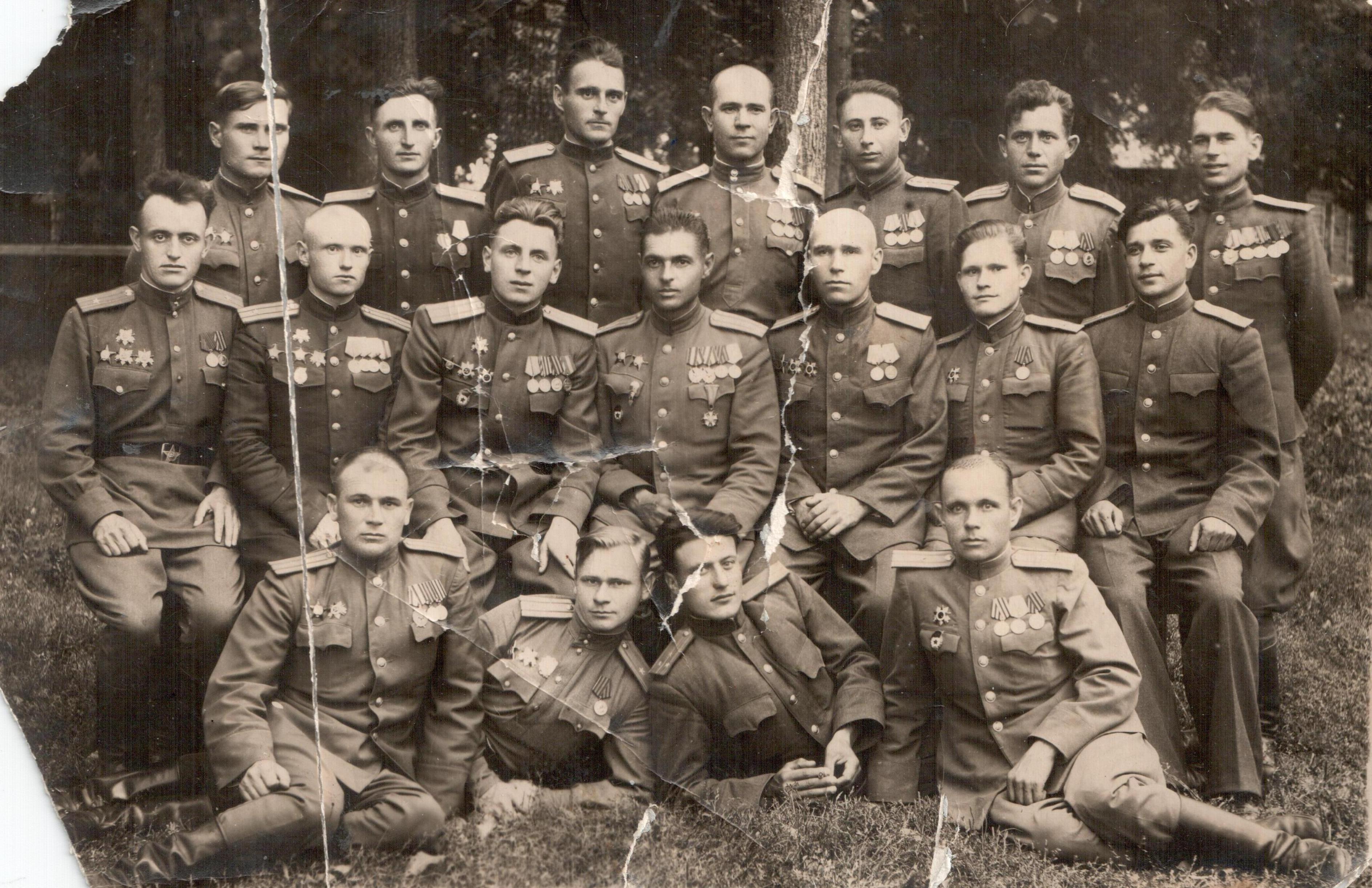 Рыбалко Андрей Михайлович родился 14 декабря 1911 года в селе Устиновка Глобинского района Полтавской области. Был первым комсомольцем в своем селе, работал учителем, помогал бороться с безграмотностью на Украине. По окончанию срочной службы почувствовал свое призвание к профессии военного и после обучения на курсах комсостава был направлен в Ленкаранский погранотряд. Однако через несколько лет службы, в связи с тем, что его отец был репрессирован по ложному обвинению, Андрею Михайловичу пришлось уволиться из погранвойск и перейти на гражданскую работу в Бакинскую киностудию, где он и встретил начало Великой Отечественной войны. После прохождения курсов переподготовки в Кутаиси в 1942 году, он отправляется на Крымский фронт в должности командира роты автоматчиков, а затем становится начальником штаба полка. Однако при обороне Крыма его полк попал в окружение. Трое суток Андрей Михайлович с обмотанным под гимнастеркой Боевым знаменем полка, по пояс в воде, через болота выходил к своим. За этот подвиг он был удостоен ордена Красного Знамени. Войну Андрей Михайлович закончил в Литве в составе 1-го Прибалтийского фронта.