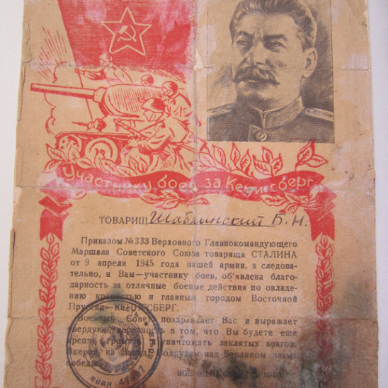 Борис Никанорович Шаблинский. Да! Он сражался за Родину!
