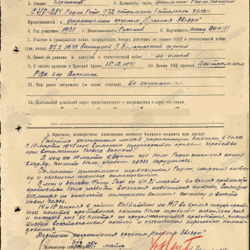 Мой отец - Самошин Николай Герасимович, 23.05.1923 года рождения, был призван на фронт Центральным РВК Воронежской области 15.10.1941 года. Воевал на Западном и 3-м Белорусском фронтах в 72 стрелковом корпусе 972 отдельного батальона связи 255 стрелковой дивизии в звании сержанта, должность - начальник радиостанции. Прошел всю войну, принимал участие в более 50 боевых действиях. За участие в героическом штурме и взятии Кенингсберга награжден медалью "За взятие Кенингсберга" (награда нашла героя только в сентябре 1978 года). 22.04.1945 г. представлен к награждению орденом "Красная Звезда". 26.04.1945 года награжден медалью "За боевые заслуги". В конце апреля 1945 года был переброшен в Сибирцево на Дальний Восток, принимал участие в 17 боевых действиях против японских империалистов в Монголии. 12 апреля 1946 года награжден медалью "За победу над Японией". Демобилизовался в 1947 году. За храбрость, стойкость и мужество, проявленные в борьбе с немецко-фашистскими захватчиками, награжден орденом Отечественной войны II степени.