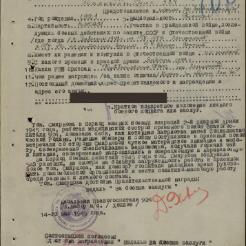 Боевой путь ветерана Любовь Николаевна Шантрукова (Смирнова) родилась в Архангельской области, в г. Каргополе. В 1938 г. поступила на 1 курс Текстильного института им. С.М. Кирова в г. Ленинграде. Когда началась война, юной студентке 3 курса было всего 20 лет. В 1941г. прошла годичные курсы медсестёр запаса. Была призвана в ряды РККА по мобилизации в январе 1942г. Куйбышевским РВК в г. Ленинграде. Все тяжелейшие дни блокады Люба проработала в осаждённом Ленинграде в эвакогоспитале № 2015, а потом в составе 2 Ударной Армии в эвакогоспитале № 924. Войну закончила в Германии, близ г. Шверина. В послевоенное время Любовь Николаевна вместе с семьёй жила и работала в г. Минске.