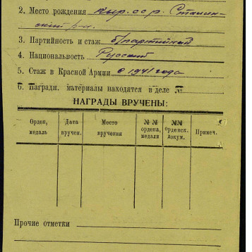 Убит 18.11.1941 г. Первичное место захоронения - д. Авдотьино, Московской обл. Современные данные о захоронении: Россия, Московская обл., Волоколамский р-н, Чепецкий с/с (Кашинское сел. пос.) ст. Строково, Братская могила.