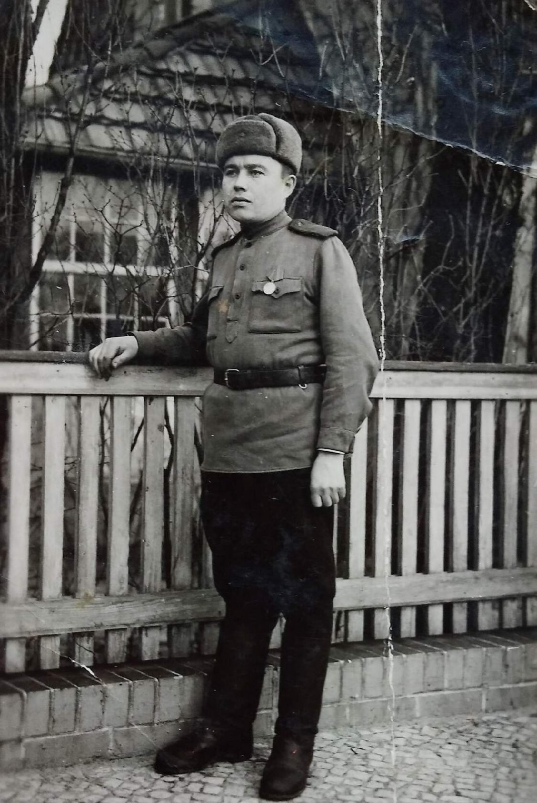 Сержант минометчик, Серебренников Александр Петрович, дошел до Берлина, был дважды ранен в ногу. Честно защищал нашу Родину.