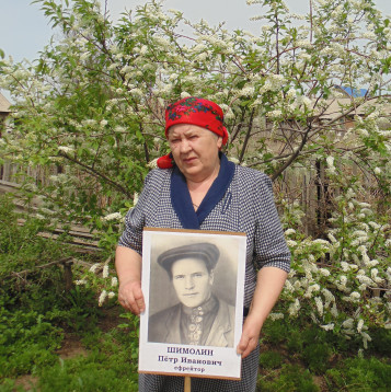 Шимолин Пётр Иванович ушёл на фронт в 1941 году, оставив жену Пелагею и троих детей: Анатолия, Александру и Юлию. Попал в Тюменское пехотное училище, был стрелком 116 стрелкового полка 21 стрелковой дивизии. Погиб в бою 21.03.1944 г. Захоронен в квадрате 4595 в братской могиле. Его имя увековечено на памятнике погибшим на 88 км. дороги Кандалакша-Алакуртти в Мурманской области.