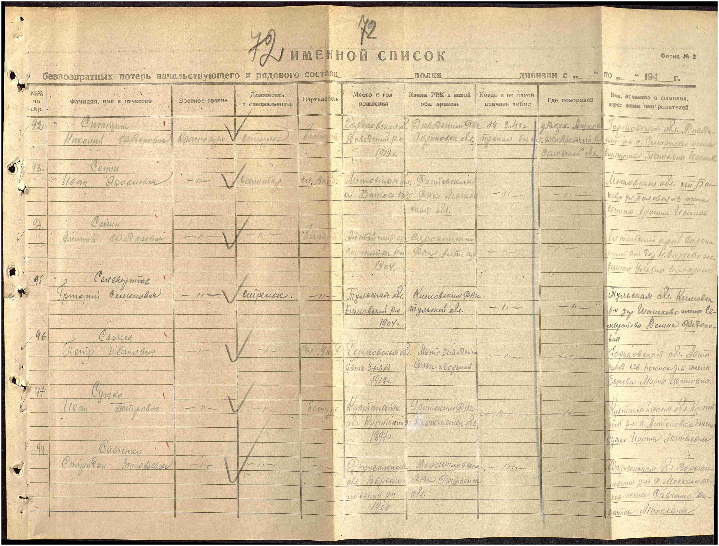 Причина выбытия: пропал без вести (при переправе через речку Ясенок в плот попал снаряд)
