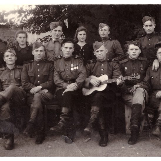 Когда началась война, ему было 15 лет. Он был высокий, крепкий. Его отправили со взрослыми на лесоразработку.В 1943г. ушёл на фронт. Был снайпером, потомполучил ранение.