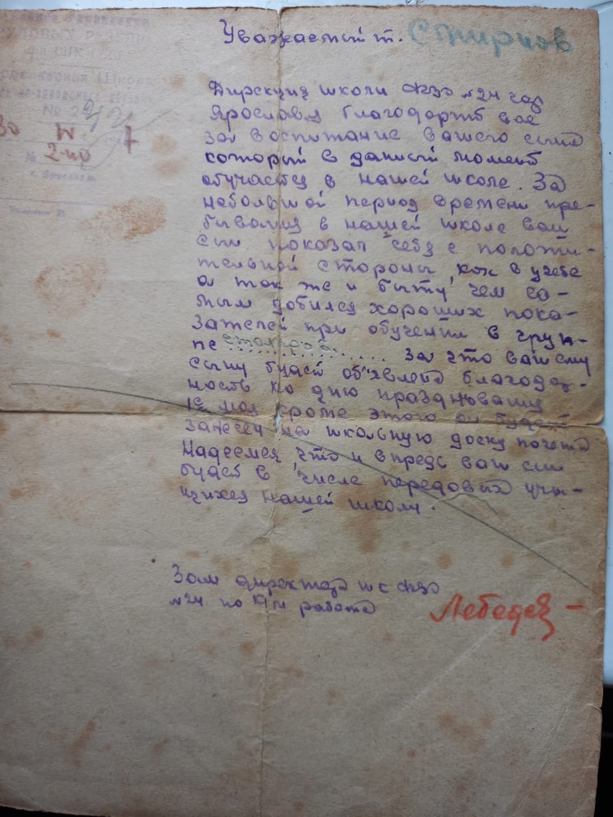 Мой прадед Василий Петрович Смирнов родился 11 августа 1926 года, в деревне Фефелово Тутаевского районе Ярославской области. Детство, как у всех в то время, было трудное, он был 11 ребенком в крестьянской семье. С детства проявлял себя с положительной стороны, умел вышивать подзоры.