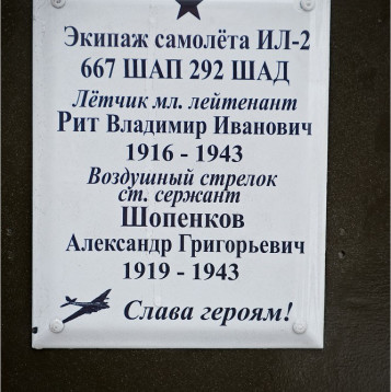 Место падения одного из самолётов, принявших участие в описанном воздушном бою, в общем-то, было известно довольно точно, местные жители, бывшие очевидцами воздушного боя или слышавшие о нём могли указать примерный район падения самолёта. Но сильно заболоченная и малопроходимая местность делали поиски погибшего экипажа очень сложными. После удара о землю самолёт ушёл на глубину около 10 метров, там разломился и, похоже, пострадал от взрыва сдетонировших неизрасходованных бомб. С течением времени воронку с останками машины и экипажа затянуло водой и болотным торфом, а поверху вырос целый молодой лесок. Целых 9 попыток подъёма упавшего в болото Ил-2 совершил поисковый отряд «Демянск» и лишь последняя оказалась результативной: среди обломков бронекорпуса нашлись тела лётчика и стрелка из состава экипажа штурмовика Ил-2. В карманах гимнастёрки лётчика поисковики обнаружили многочисленные документы, однозначно подтверждавшие личности обоих героев, в том числе часы, которые остановились в 2 часа 3 минуты... Их имена:лётчик — младший лейтенант Владимир Иванович Рит (отчество в документах может быть указано как Павлович или Петрович) из Ленинградской области, посёлок Тарковичи.стрелок — старший сержант Александр Григорьевич Шопенков из Орловской, ныне Брянской области (Комаричский район, с. Шарово).