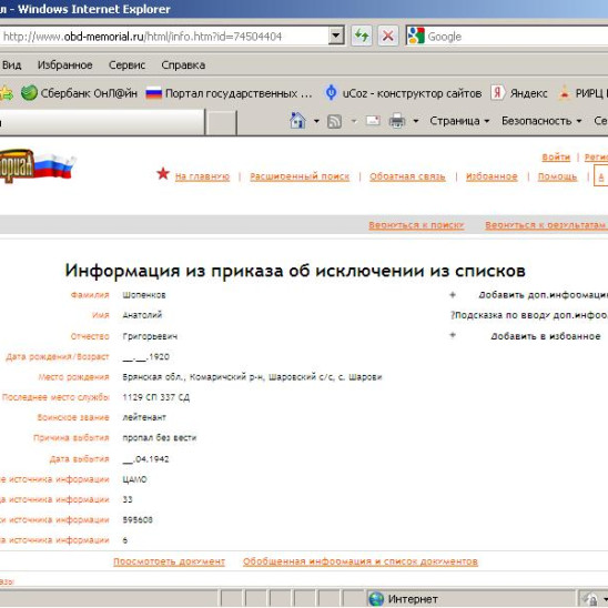 Мы нашли информацию о нём чисто случайно в интернете в 2015 году (в 70-летнюю годовщину Победы), вбив его фио в поисковике. Оказалось, что его родственников уже давно ищут...