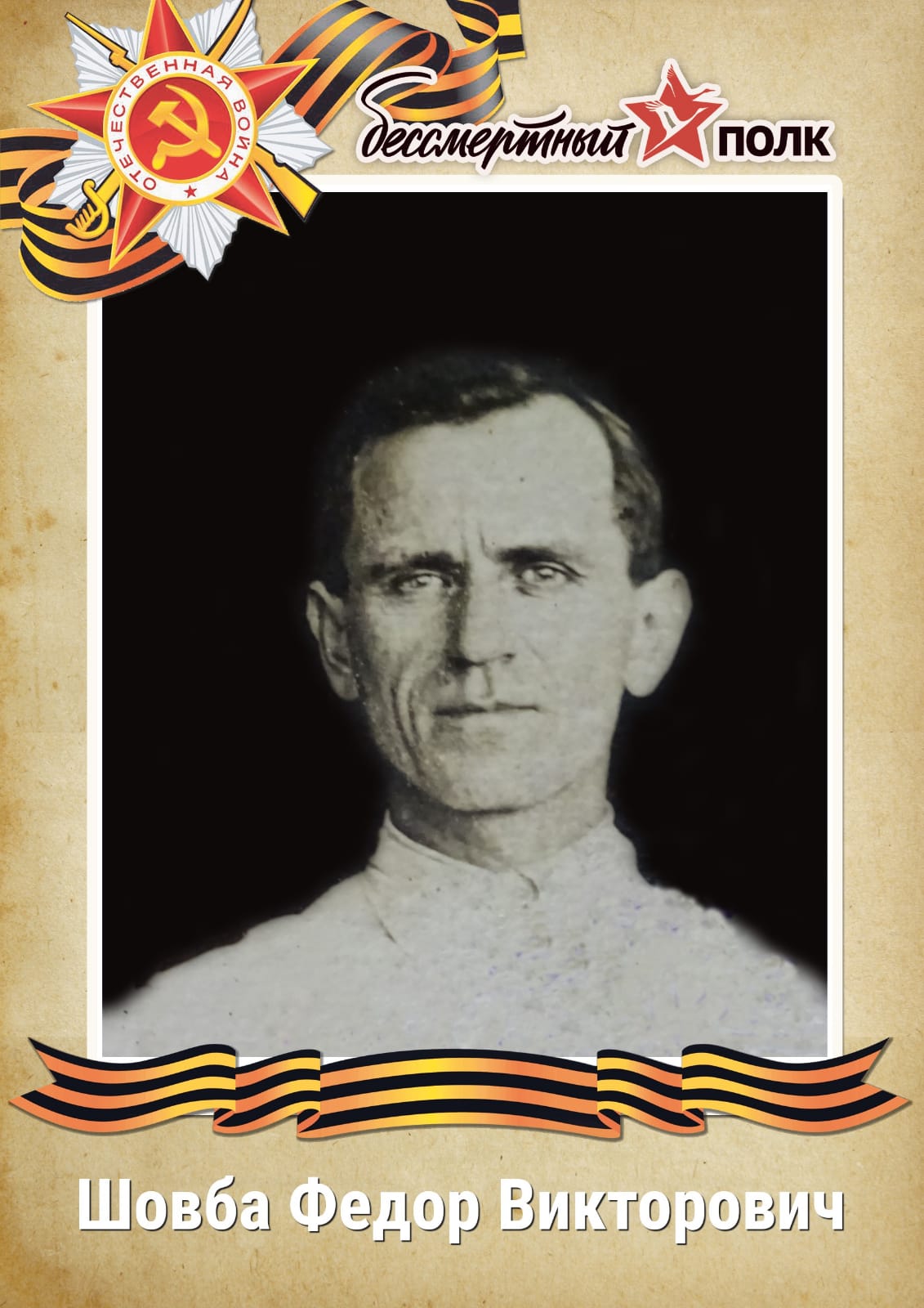 Шовба Федор Викторович, родился в 1904г. в ст.Архонской СОАССР (РСО-Алания), где вырос, в возрасте 22 лет женился на Лазурко Матрёне Петровне, семья переехала в г.Беслан, родилось 4 детей. Шовба Ф.В. работал в узле связи, был единственным связистом на весь район и передавал вести с фронта. В 1943г. был призван на фронт, где с честью исполняя свой воинский долг погиб в бою за Крым, в п.Ак-Манай (с.Коломенское) в 1944г., сгорел в танке. Похоронен в братской могиле там же. Его супруга осталась одна и вырастила 4-х детей, 3 дочери получили высшее образование и стали учителями, а сын окончил техникум и всю жизнь работал машинистом тепловоза. Матрёна Петровна же не веря в гибель супруга ждала его до самой смерти.