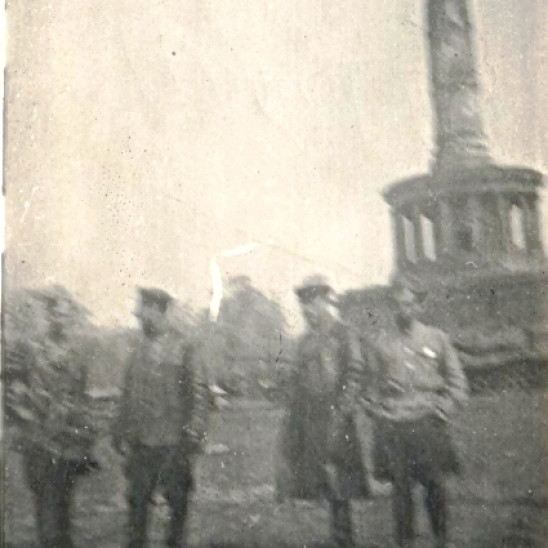 Мой дед прошел в Великую Отечественную Войну от Пулковских высот до Зееловских и вошел 2 мая в Берлин. Боев не снимали, некогда было, после капитуляции Берлина стали фоткаться, снимок нечеткий – только все кончилось, он в плаще. Наткнулся недавно на фото этого же места американского корреспондента Лайфа – ему снимать дорогой камерой через 2 месяца, когда мы им передали этот сектор было легче, чем бойцам Конева руками, привыкшими больше стрелять, чем щелкать древним аппаратом и снимок получился красивее, однако первая фотография несравнимо дороже для меня...Так он праздновал Победу, купался в Дунае (Вена) и встречал семью в Берлине... Весьма просто было тогда попасть заграницу – всего 1 бумажка - виза НКВД и очень тяжело вернуться в Питер - без Ворошилова не пустили бы обратно из эвакуации мать с бабкой.После командировки в Вену его назначили комендантом в маленький городок Ютебог (известный проповедями Лютера а пот ом крупнейшей базой СА в ГДР) они переехали туда, но… это авто дед одолжил приятелю летчику-герою СССР, тот был выпивши, задавил немку, деда в 24 часа из комендантов и из армии:) с семьей в Ленинград, правда успел попасть на парад Победы.Интересная деталь на фото где он с женой и боевыми друзьями: у нее на платье что-то типа брошки белой круглой, это блокадный знак, был сделан из пластмассы, похожей на кость и покрыт чем-то фосфоресцирующим, долго еще потом светился в темноте, ходили с такими все почти в блокаду на улице...Дед умер от последствий тяжелого ранения до моего рождения и про его интересную биографию остались только семейные легенды: Его записали приемным сыном в семью своей тетки-смолянки со стороны матери еврейки, входившей в боевую дружину, ФИО - Степин Василий Иванович вымышленные, т.к. он был незаконнорожденным ребенком от неизвестного отца (по запросам из ЗАГСа в смоленскую область такой в записях в церковных книгах не значится, да и местность, которую он указывал в документах призывных тоже вымышлена), семейное прозвище "князь Смоленский"оттуда, а когда большевики захватили Смольный мать его приглянулась Малькову и он ее увез их с теткой в 18 году в Москву в Кремль, где он будучи комендантом сжег Фанни Каплан в бочке, вокруг которой приплясывал Демьян Бедный, тетка потом стала первой женщиной инженером-метростроевцем (была ее фотография в Огоньке) они с сестрой по свидетельству из архива на первую жену Малькова были революционерками родом из Риги и настоящая фамилия деда осталась неизвестной, т.к. после того как самого Малькова (а он успел от первой жены отказаться и ее тоже репрессировали) посадили дед все засекретил., сам он остался в Питере потом переезжал с завода на завод зарабатывая трудовую биографию, правда все больше по фото проводил какие-то собрания типа профорга или политинструктора, в 1933 ему удалось попасть в армию, после финской стал кадровым старшиной.фото документов кадровой армии до и после Финской войны Когда в сентябре немцы подошли к Пулковским высотам на его батарее, где он служил старшиной и в полку не осталось командиров: все были или убиты или ночью сбежали в плен, было это в ночь, когда Ворошилова приехал менять Жуков, дед пошел пешком в Смольный, доложил об этом, его принял сам Жуков, приказал организовать оборону и назначил его комбатом.Рядом был разбитый немцами завод масложировой, на 