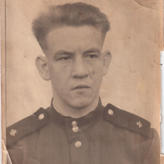 В 18 лет ушёл на фронт, тогда был 1941г в 1942году подорвался на мине и попал в госпиталь ампутация ноги выше колена) Потом он в тылу был сапожником ,шил и чинил всю обувь для солдат))К сожалению умер давно предсказал свою смерть и умер в свой день рождение) Все награды бабушка положила в гроб , все документы к сожалению испортились в сарае,,