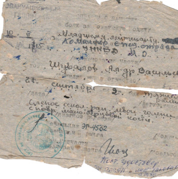 ранен в ногу и отправлен на лечение в эвакуационный госпиталь 4562 в пос.