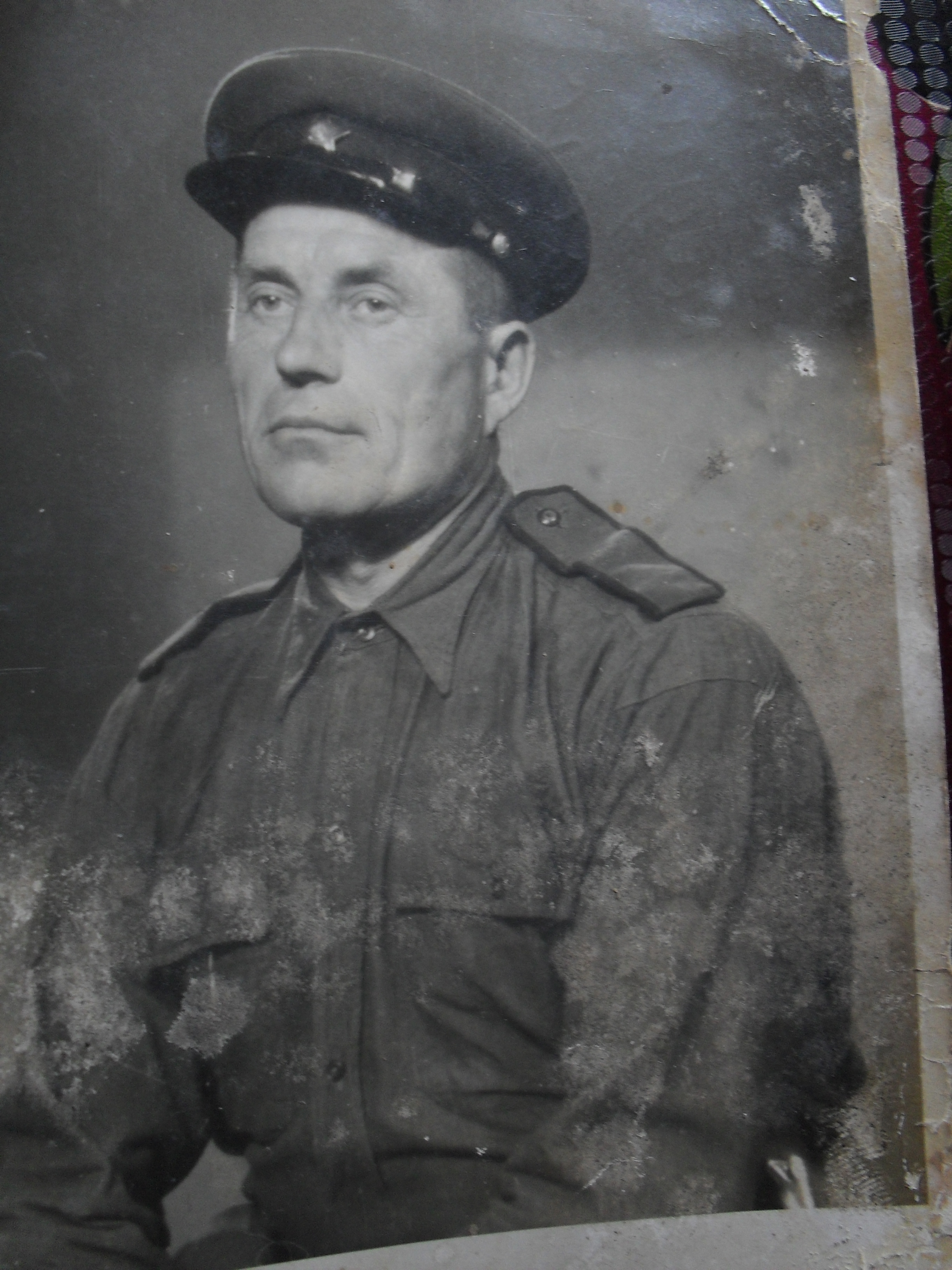Был болен и в действующую Армию не призывался. Копал окопы под Ростовом. Там принял участие в бою и показал своё геройство и был награждён Орденом Отечественной войны 2 степени.
