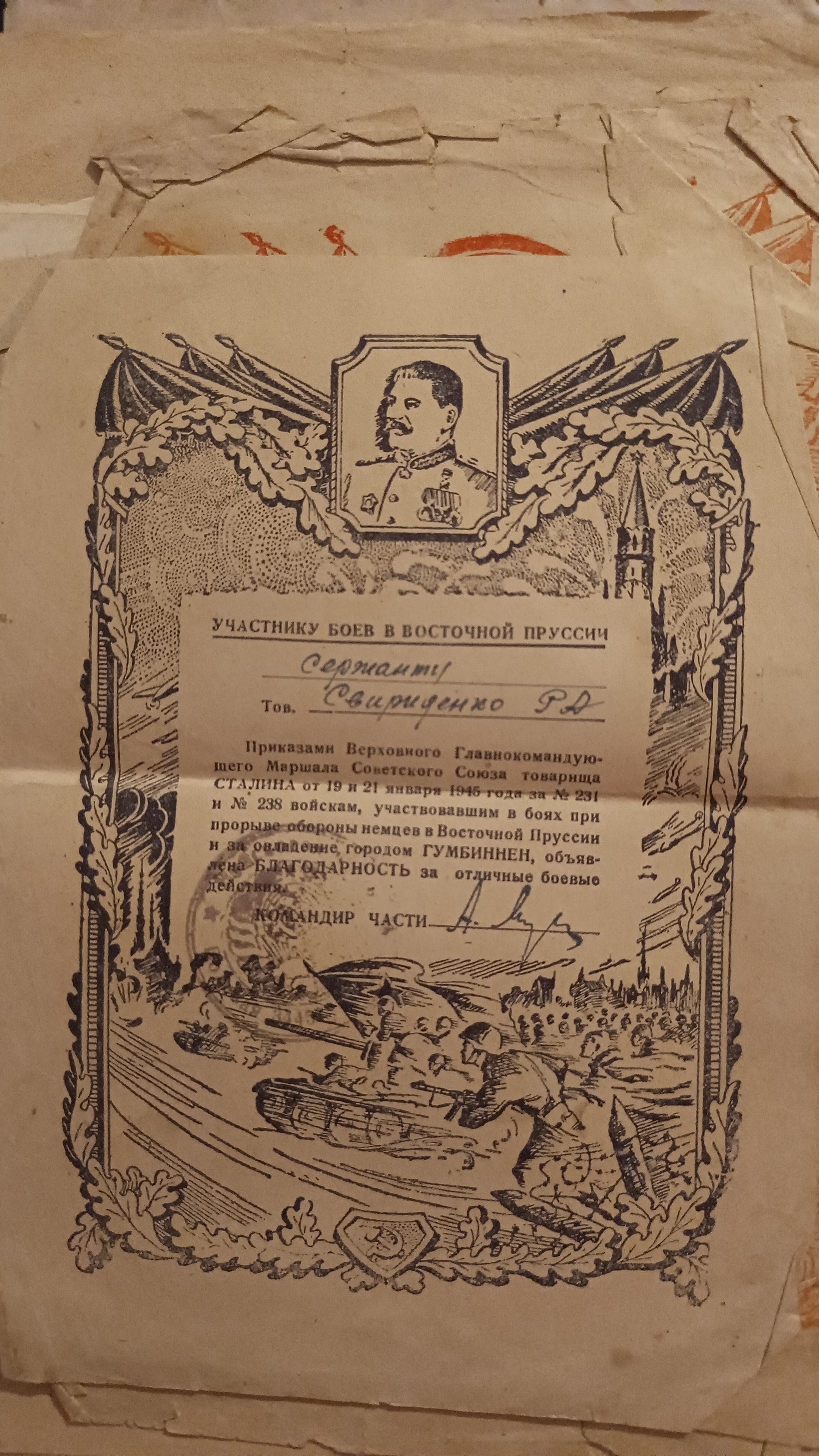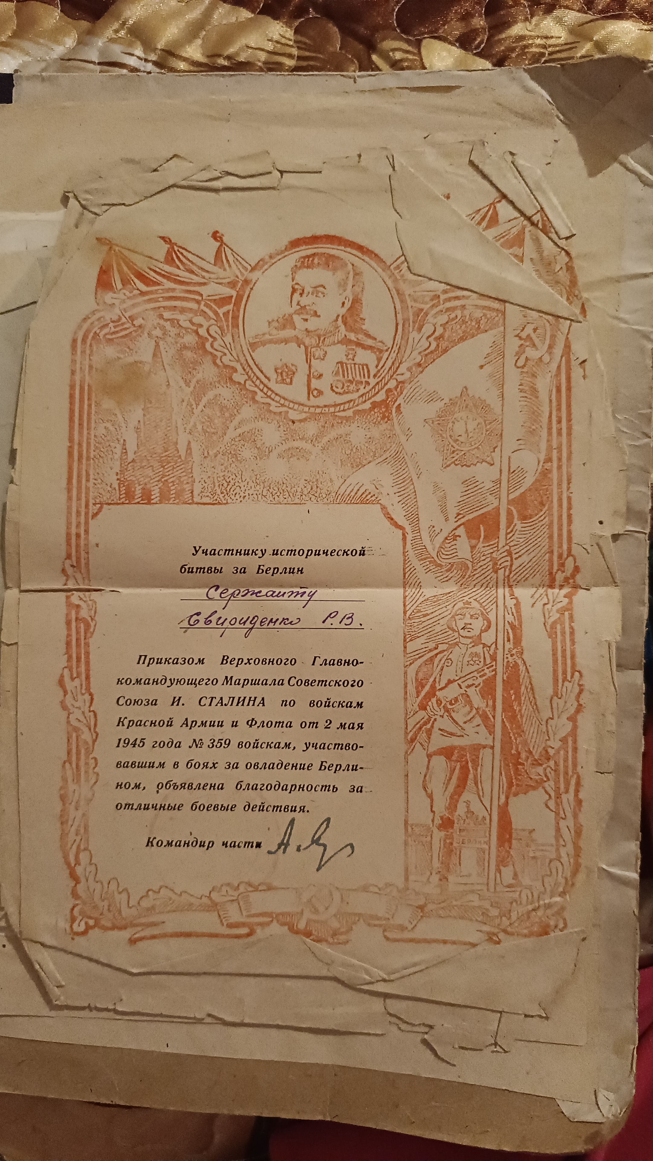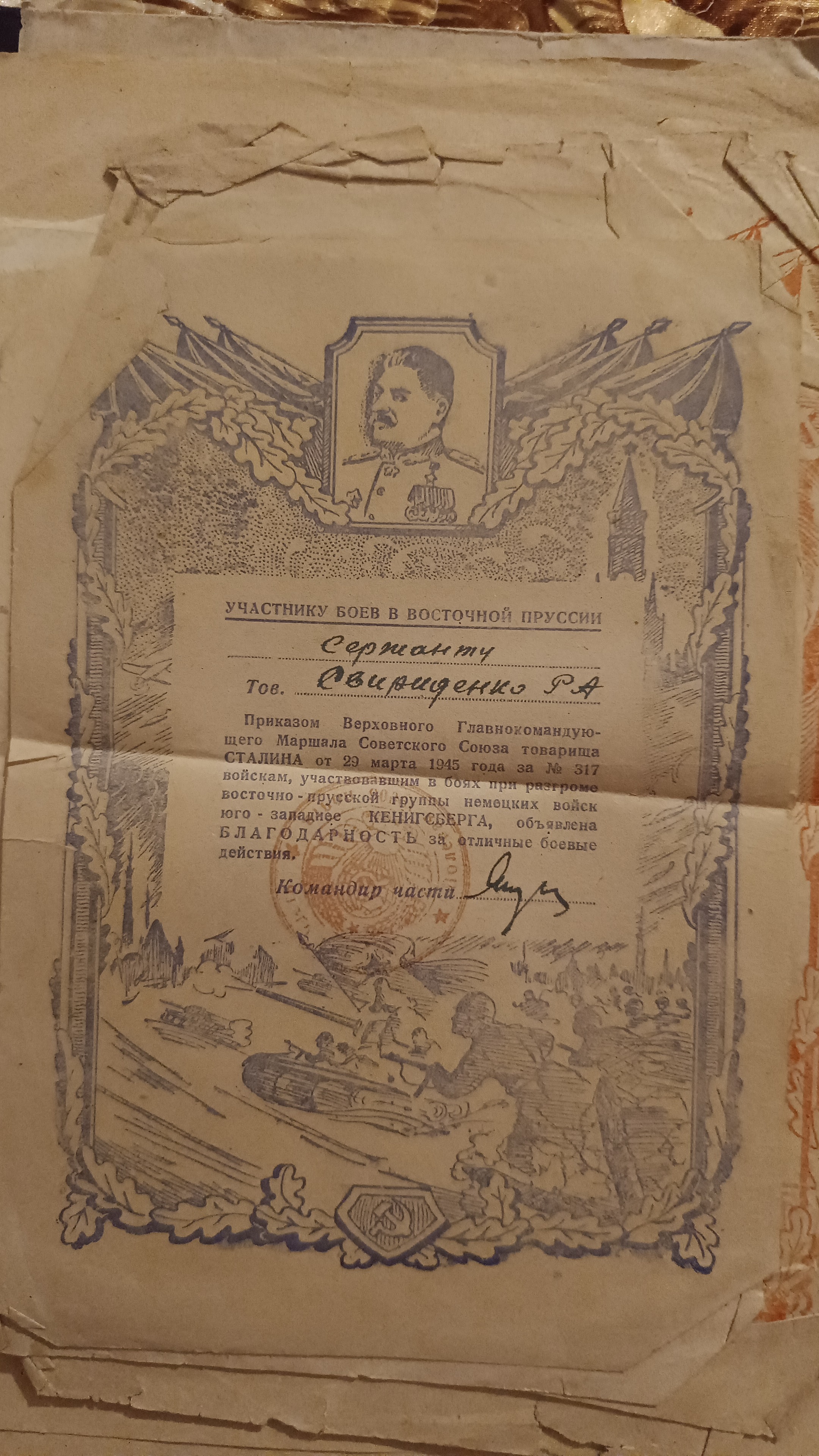 Был призван на войну в г. Владивосток, в военной билете неправильно был указан год рождения-1900, дошел до Берлина, не любил вспоминать о войне, к сожалению какие-то нелюди украли все медали