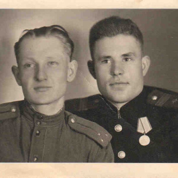 В начале Великой Отечественной Войныс августа 1941 года был назначен командиром взвода связи Юго-Западного Фронта. Принимал участия в тяжёлых боях по удержанию Немецких захватчиков и был тяжело ранен. Нагржден медалью «За отвагу» и «За боевые заслуги». С 1943 года воевал на Северо-Кавказском фронте, где он был награждён медалью «За оборону Кавказа». С декабря 1943 года его перевели на 1-й Украинский фронт. Проходя через ожесточённые бои он дошёл до Берлина, где и встретил Победу!!! Если я с какими-то фактами ошибаюсь-буду рада, если меня поправят другие внуки и правнуки нашего Великого Деда!