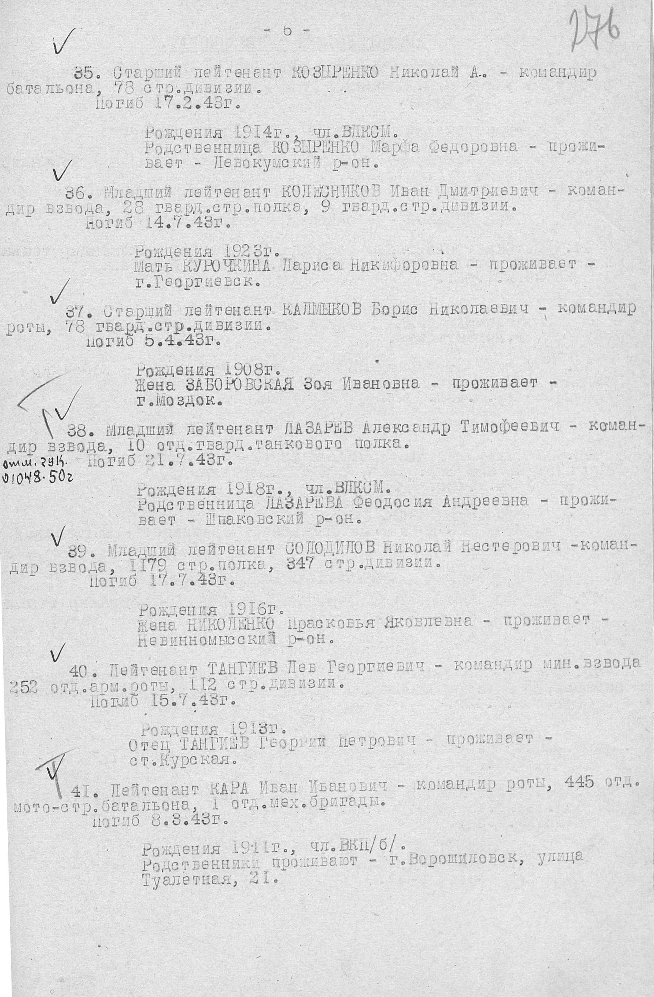 Боевой путь ветерана Командир миномётного взвода, погиб во время Курской битвы, похоронен в с. Гломаздино, Курской обл. Могила найдена лишь в 2014 году.