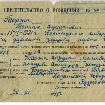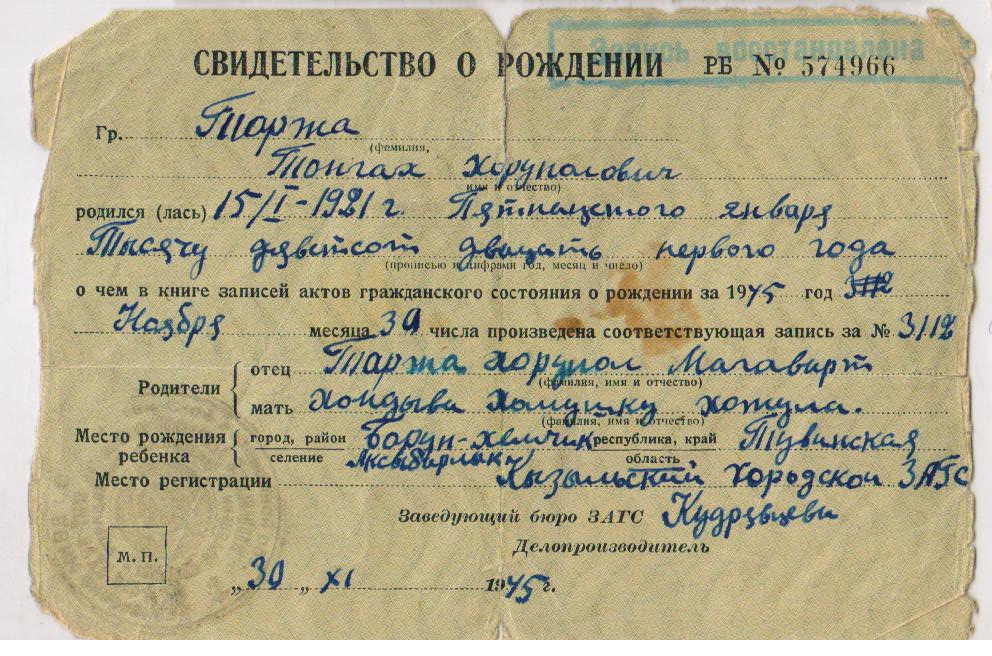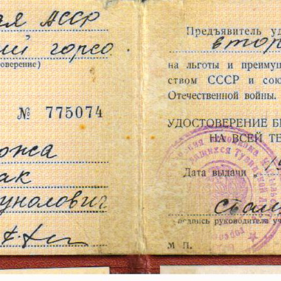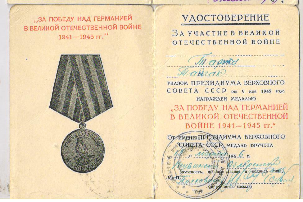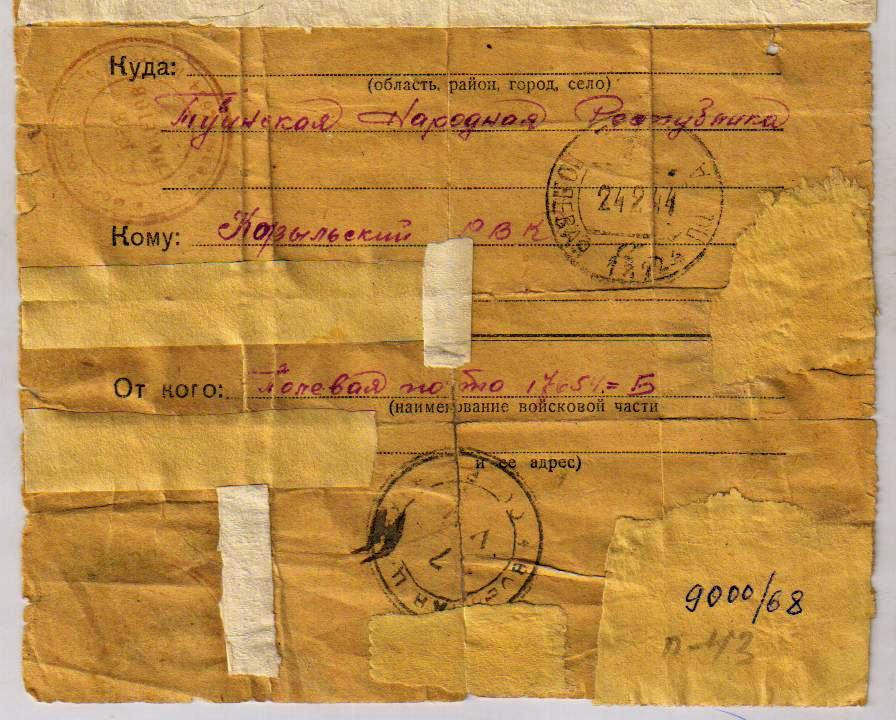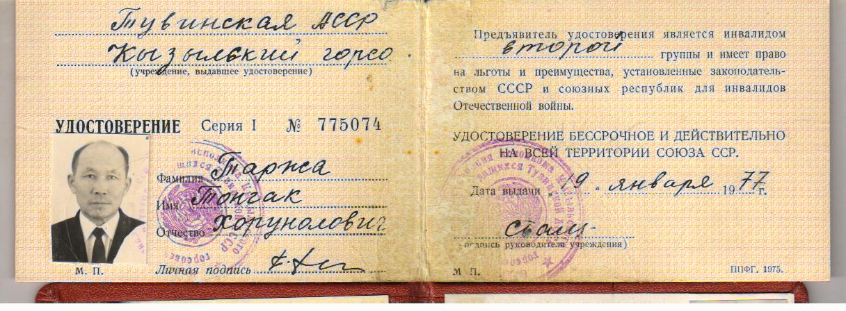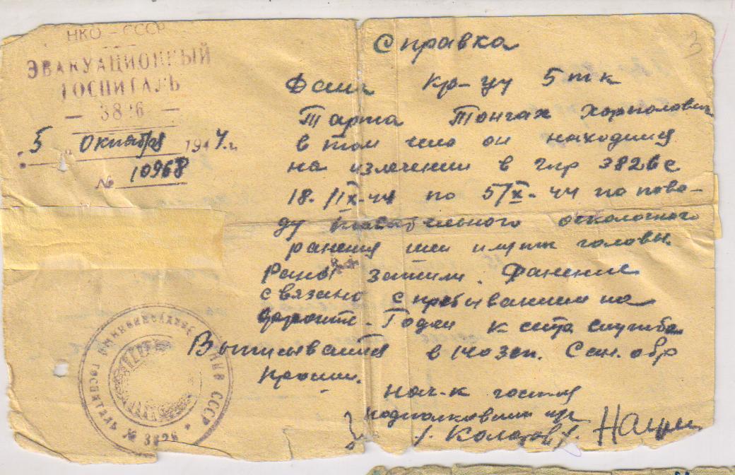 Тонгак ушел на фронт 1 сентября 1943 г.