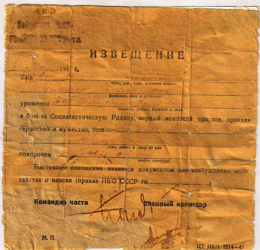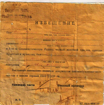 После его боевой путь стал личным путем без земляков. Родные получили извещение