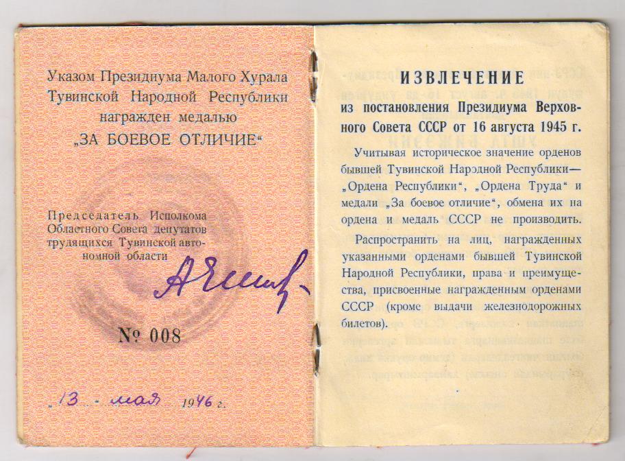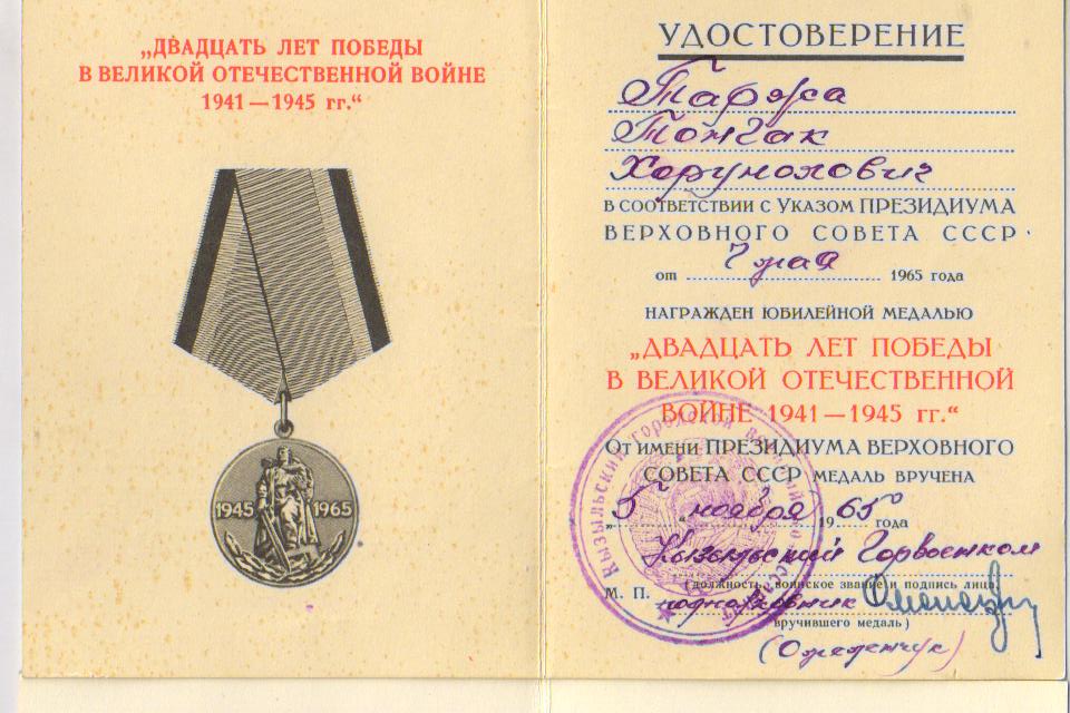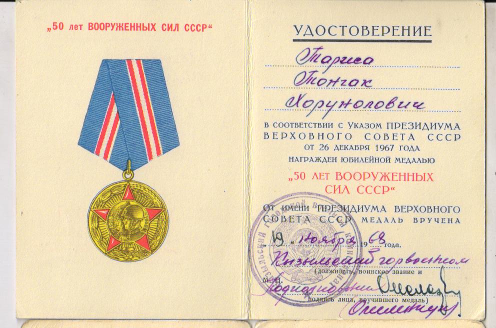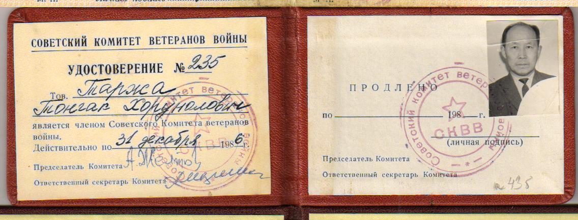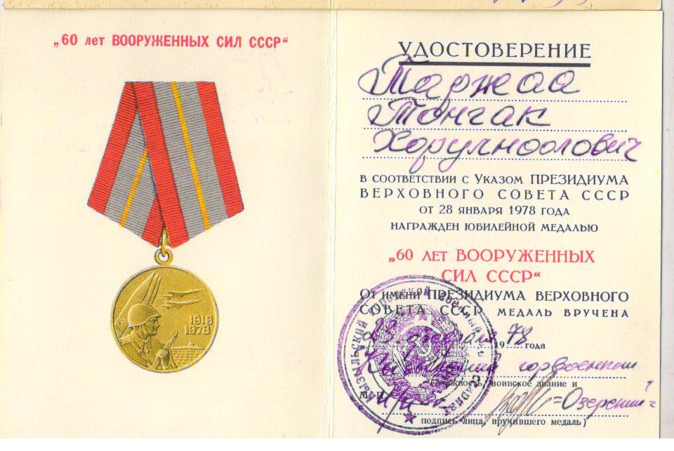 мае 1945 г. был зачислен 65 гвардейскую дивизию Сибири. Таржаа Т. вернулся домой