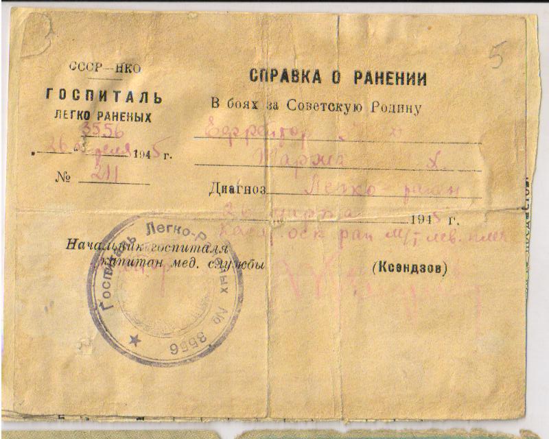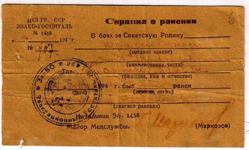 ранение-госпиталь Киева, Курска — г. Гори Грузии. В августе 1944 г. был зачислен