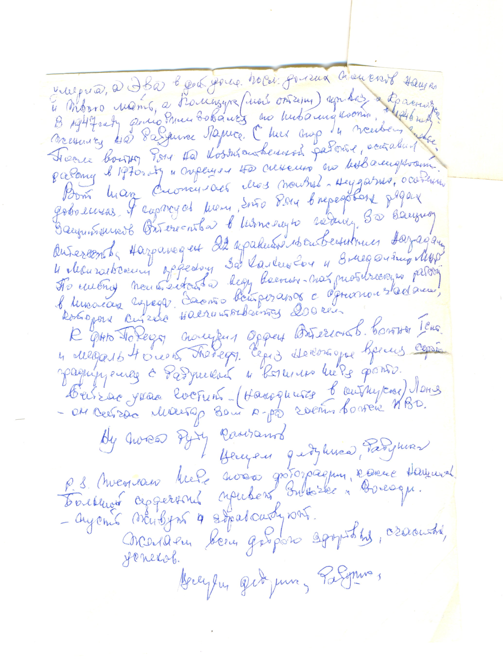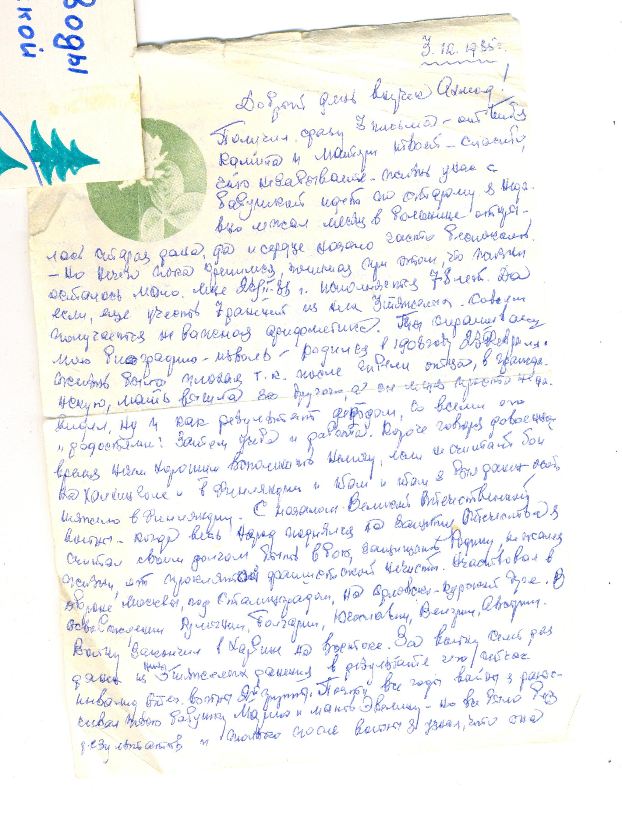К сожалению даже биографию он выслал мне с большим трудом не любил рассказывать письмо с биаграфиией прилагаю
