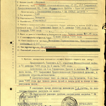 1945 год, свидетельство о ранении выписано 15 мая 1945 года).