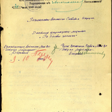 Великой Отечественной Войне 1941-1945 гг.», медаль «За отвагу» (20 ноября 1945