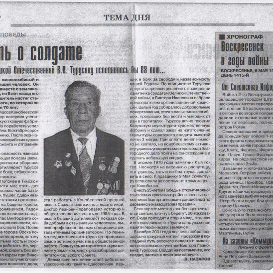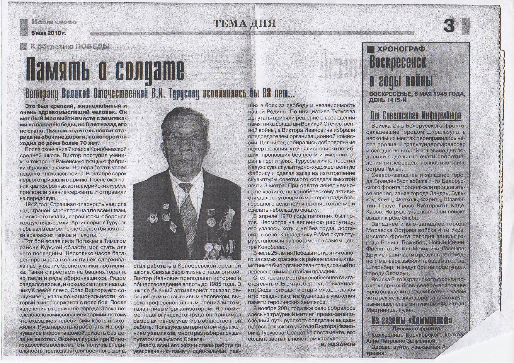 Боевой путь ветерана Этого замечательного человека односельчане не забудут никогда! Долгое время он преподавал историю и обществоведение в Конобеевской средней школе, активно занимался общественной деятельностью, несколько раз избирался Депутатом Сельского Совета. А ещё, именно он был инициатором и руководителем установки памятника односельчанам, погибших в боях Великой Отечественной Войны!