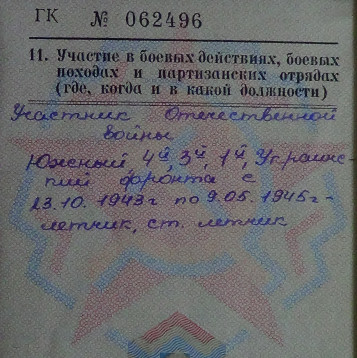 в Великой Отечественной войне 1941-1945 гг.», медалью «За освобождение