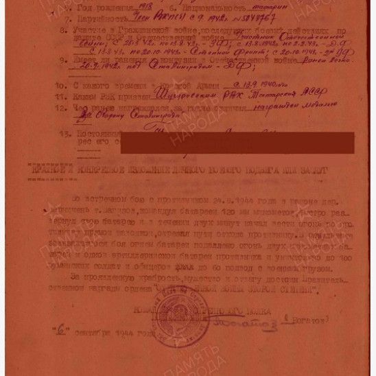 Родился 07 октября 1918 г. в д. Каркали Татарской АССР. В 1939 г. был призван в армию. Закончил курсы мл. лейтенантов при Сретенском военно-пехотном училище в 1941 г. по специальности командир минометного взвода. Воевал 1939-1941 на Западном фронте, 1941-1942 на Донском фронте, 1943-1944 на 2-м Украинском фронте, 1944-1945 на 3-м Украинском фронте командиром минометной батареи. Награжден орденом Отечественной войны 3 и 2 степени, медаль "За оборону Сталинграда".