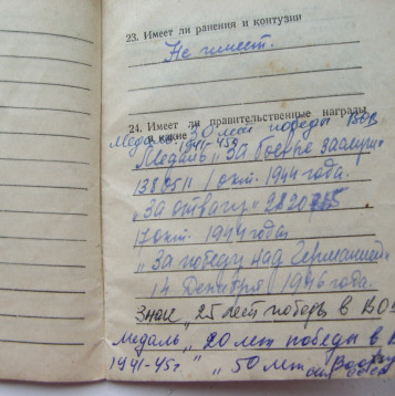 Валиахметов Минниахмет Хазиахметович, мой папа родился в татарской деревне. Окончил 5 классов. Выучился на комбайнёра-тракториста, работал в МТС механиком. Просился на фронт, но его не призывали т.к. он обучал при МТСе ребят вождению автомобиля. Призвали его в 1942 году. Воевал в Резерве Главного Командования (РГК) . Воевал на многих фронтах в составе 839 гаубичного артиллерийского полка. О войне рассказывать не любил. Для него война закончилась 14 июня 1945 года в Чехословакии, в Праге.