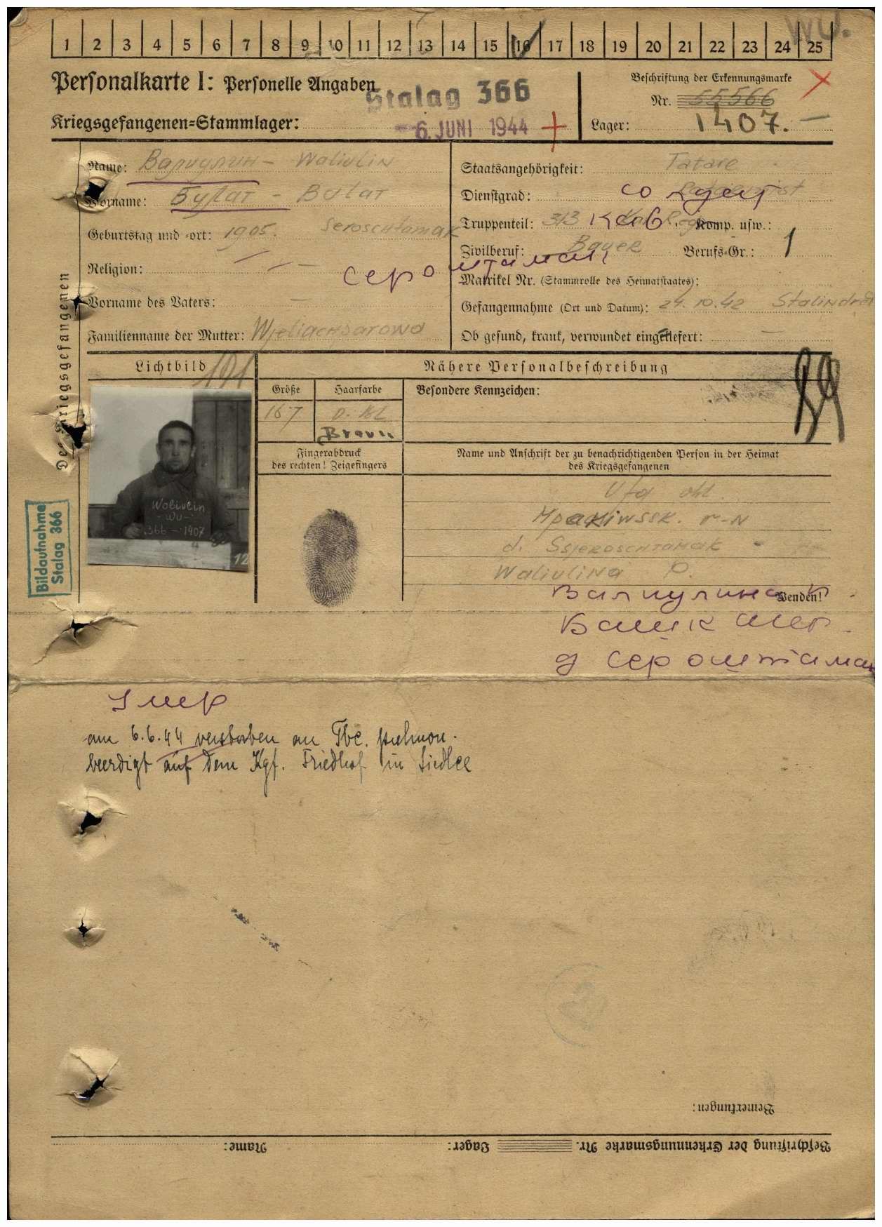 Попал в плен 24.10.1942 под Сталинградом.