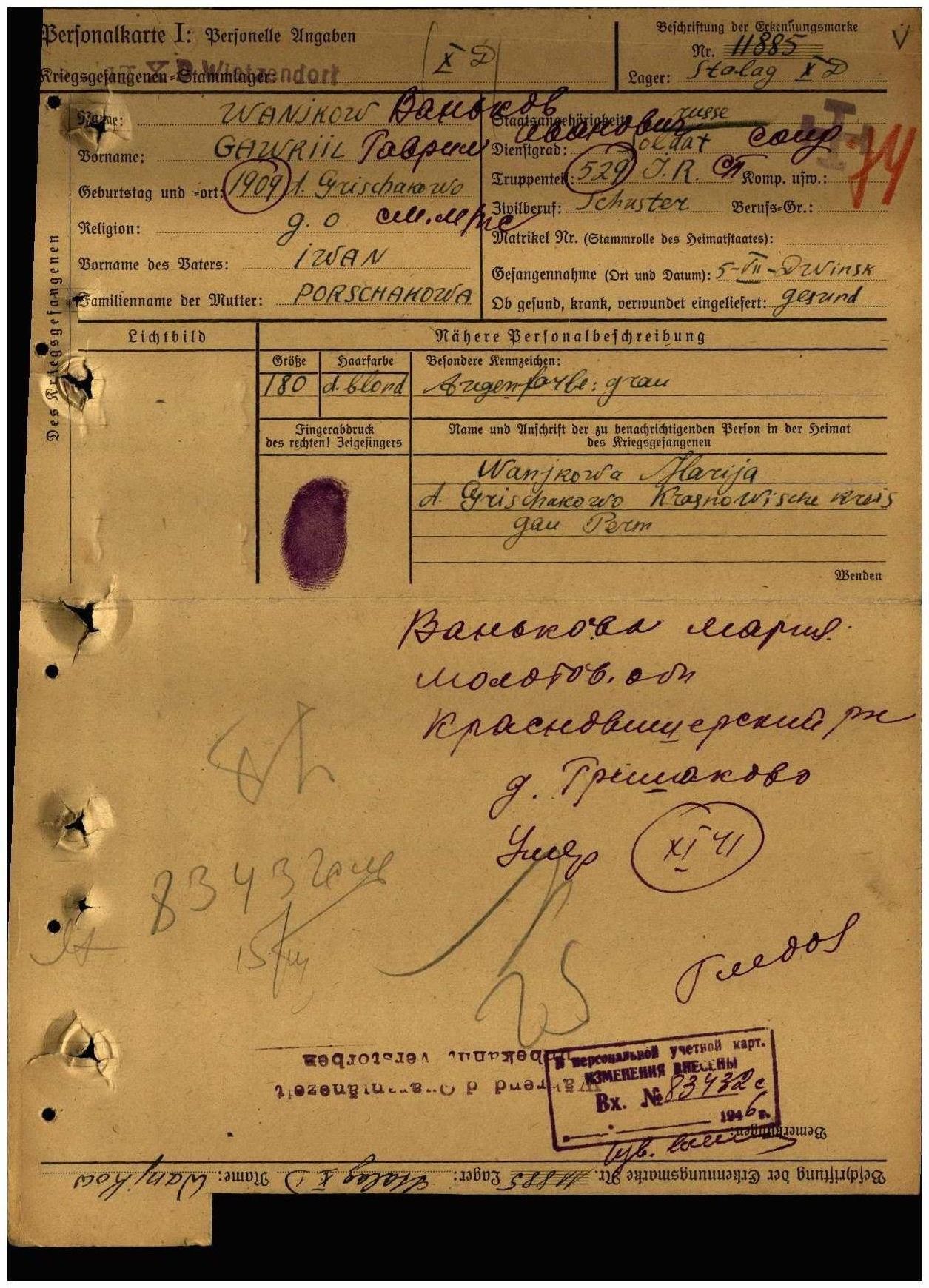 дедули мы узнаём из немецкой карточки военнопленного! Возможно, и его душа