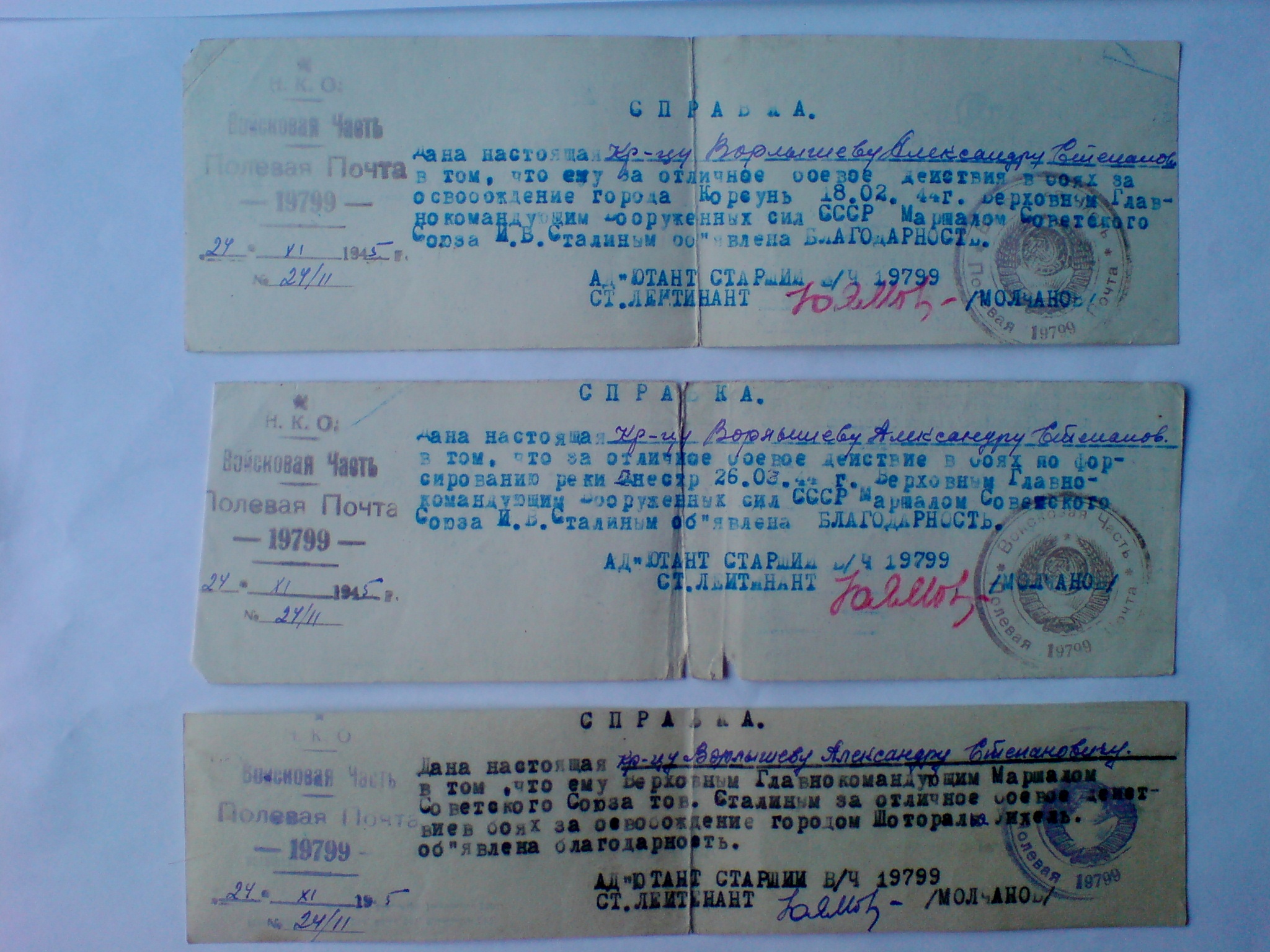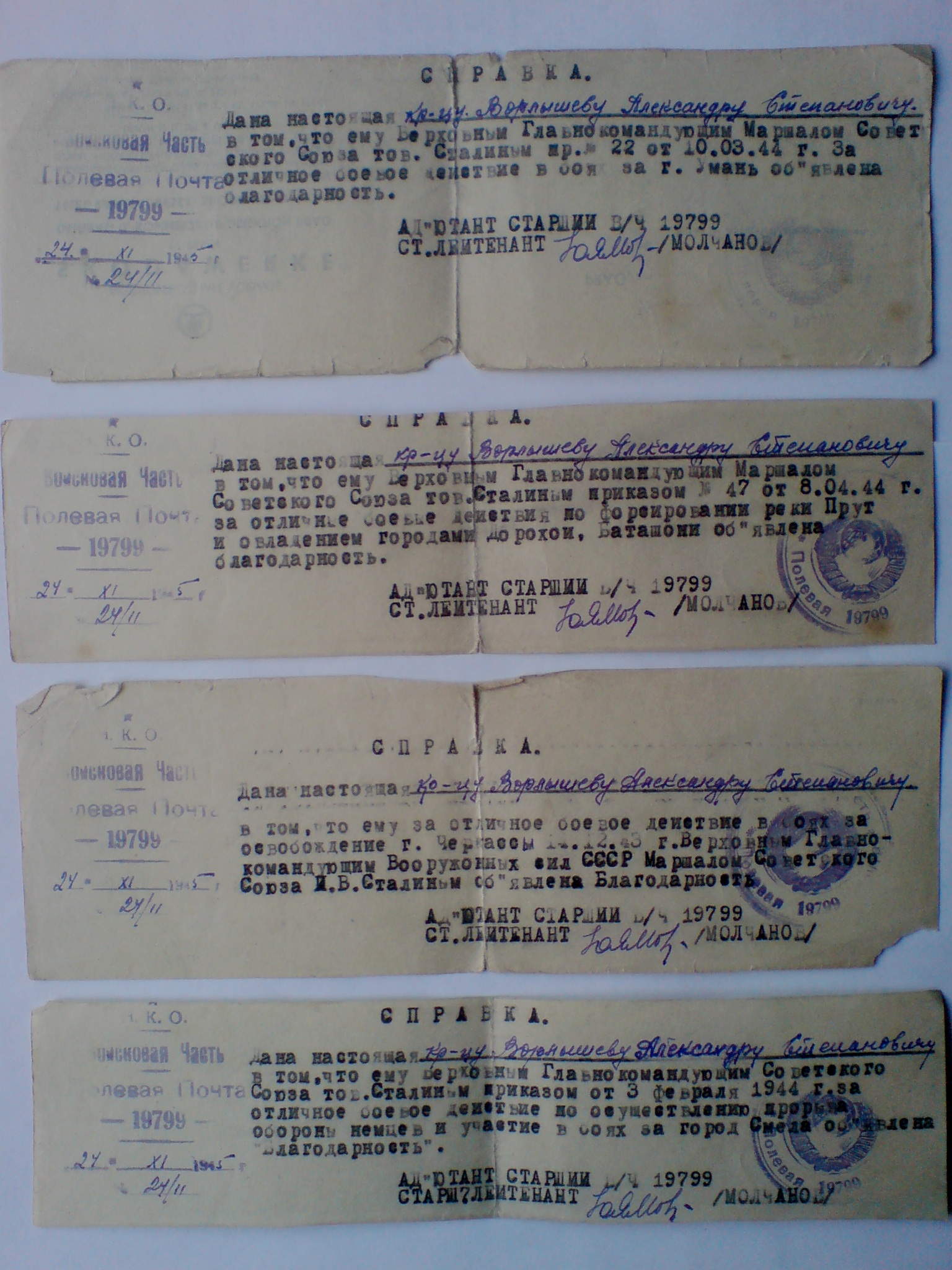 Баташани(Румыния, 1944г); за участие в освобождении Г. Умань, г. Корсунь, г.