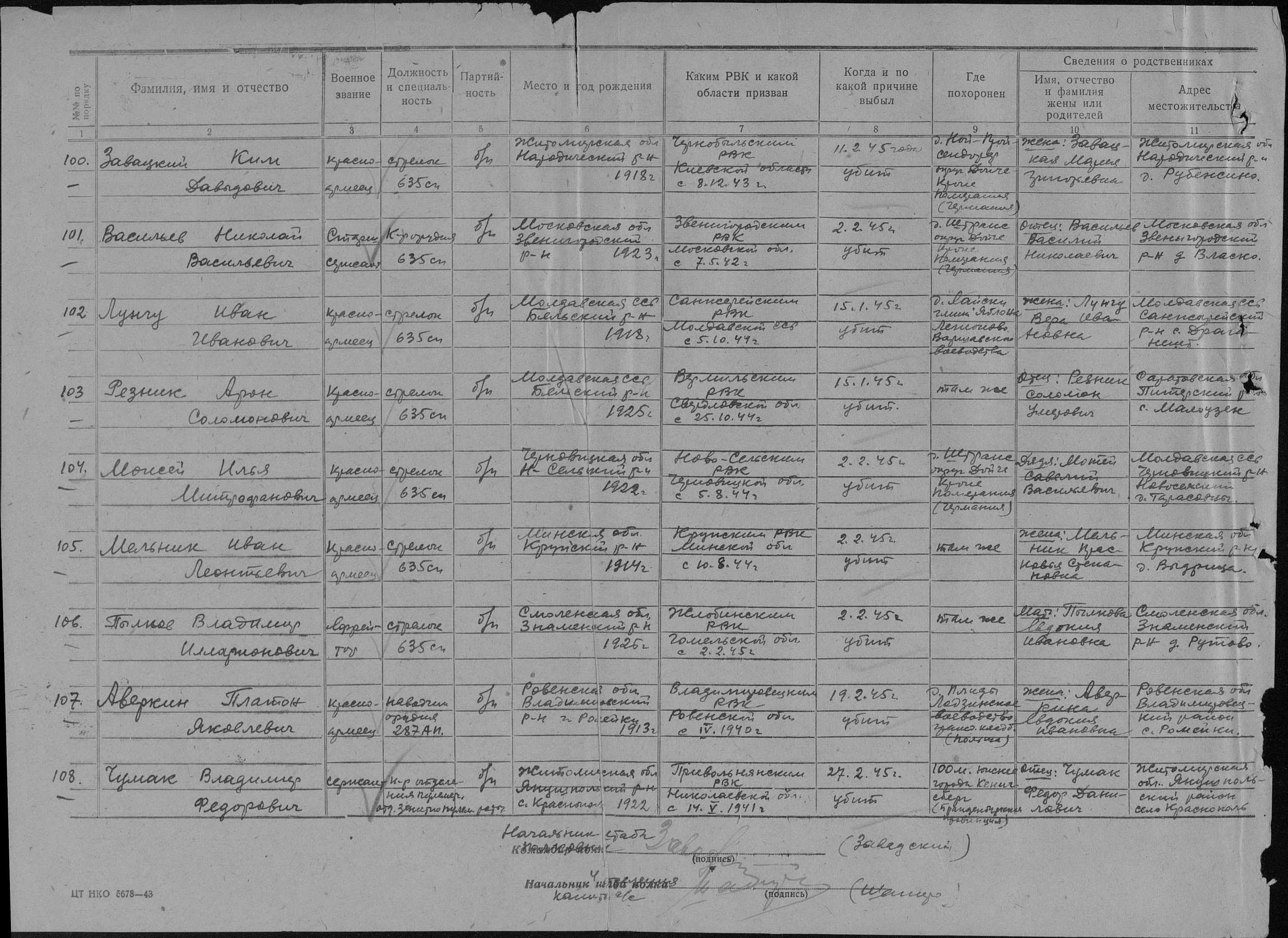 Это мой дядя. На фронт ушёл 7 мая 1942 года Был командиром орудия, имел звание старшего сержанта Погиб 2 февраля 1945 года в районе населённого пункта Дейч-Кроне, Померания, Германия (ныне город Валч, Западно-Поморского воеводства, Польша).