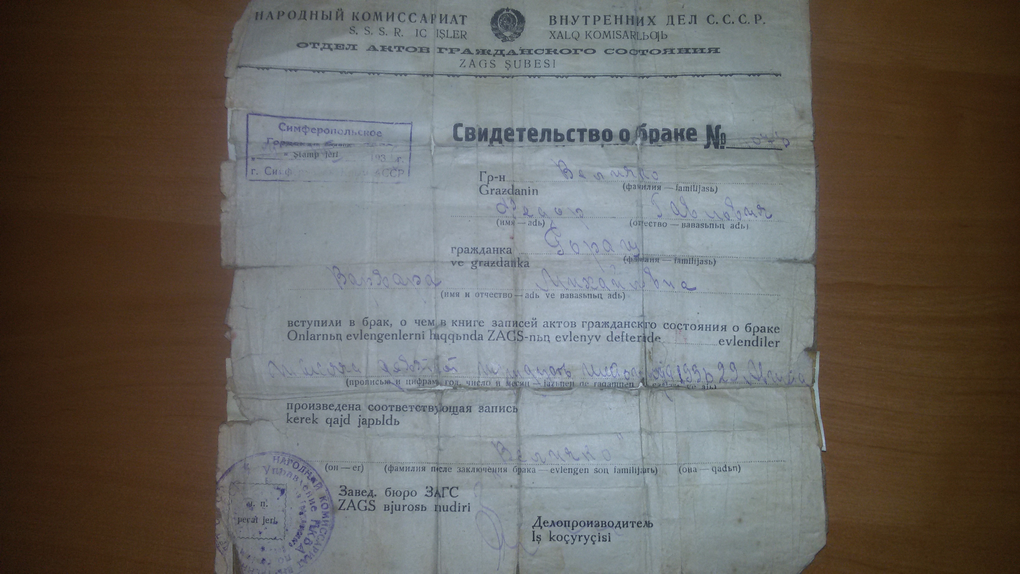 Величко Федор Павлович - мой отец, родился 21 июня 1911 года в городе Саки. Затем в начале 30-х годов он встретил и полюбил свою Варюшу, в девичестве Гораш Варвару Михайловну. В 1936 году Федор и Варвара поженились и стали проживать в городе Симферополе, а 03 апреля 1939 года у них родился долгожданный сын Владимир. До войны Федор работал шофером в Крымсоюзе.