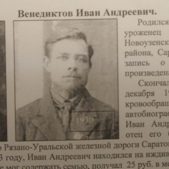 Мой прадедушка - Венедиктов Иван Андреевич - 22 августа 1941 года ушёл на фронт. Место призыва: Самаркандский ГВК, Узбекская ССР. Воевал на Северо-Кавказском фронте, 545 Стрелковый Полк, рота ПТР, 389 Дивизии. Награжден Орденом Отечественной Войны II степени (Орд.книжка № 012464), Медалью "За Победу над Германией 1941-1945 г. (Указ Пр.Верх.Сов.от 09.05.1945г.). Лейтенант. 📅18 февраля 1944 года был уволен в связи с ранением. В мирное время занимал должность 2 секретаря Райисполкома Каракульского района Бухарской область Узбекской ССР. Работал в милиции. В Самарканде женился на моей прабабушке, Клавдии Михайловне Курсаковой. Родились дети - Валентина и Евгений, мой дедушка. Мой прадедушка очень похож на моего папу, Венедиктова Михаила Евгеньевич, своего внука. Мы помним! Мы гордимся, что у нас такой героический дедушка и прадедушка!!!