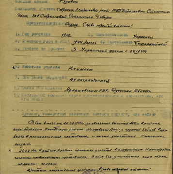 на 26.04.1944 г. за овладение высотой 250,0 в районе села Альбина Котовского района Молдавской