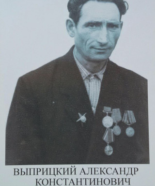 Моего прадедушку звали Выприцкий Александр Константинович. Не дослужив в армии, он совсем молодой попал на фронт. Воевал в разведывательной роте и был минометчиком-разведчиком. У него даже есть медаль "отличный минометчик". Много раз приходилось таскать на себе и на лошадях минометы. По грудь в воде, промокшие, холодные они тащили эти минометы на линию фронта. Во время одного из заданий сталкивался с немцем в рукопашном бою и победил его. По званию был старшим сержантом и был командиром отделения разведки 560-го армейского минометного полка.