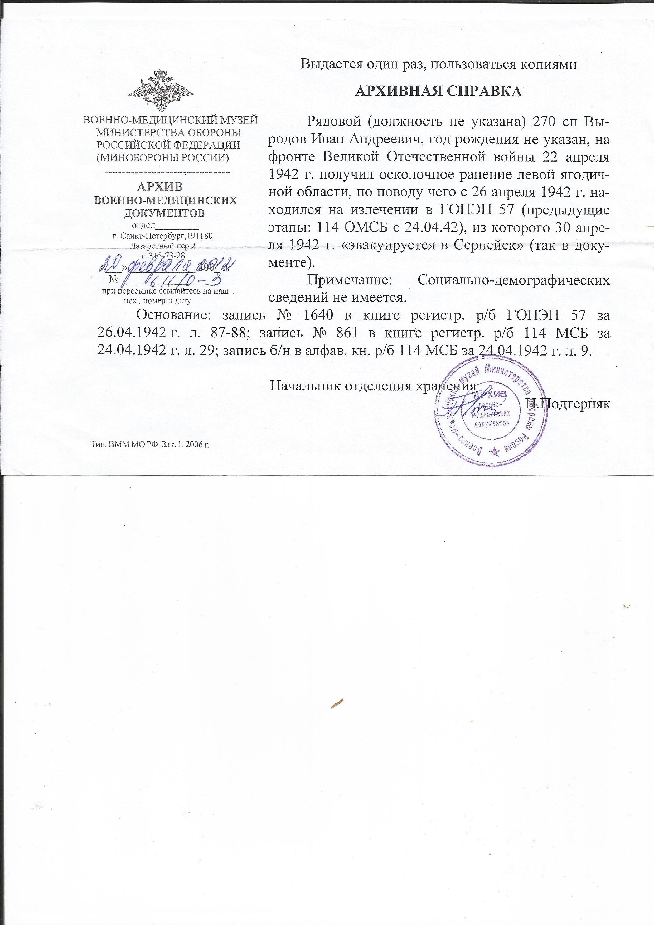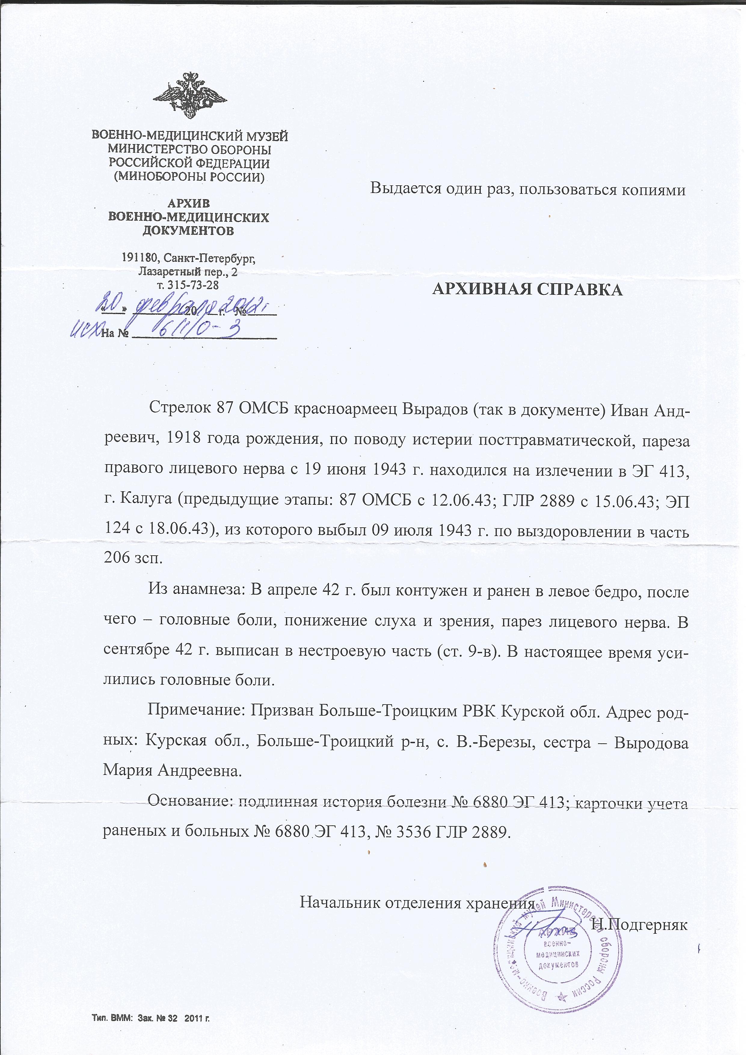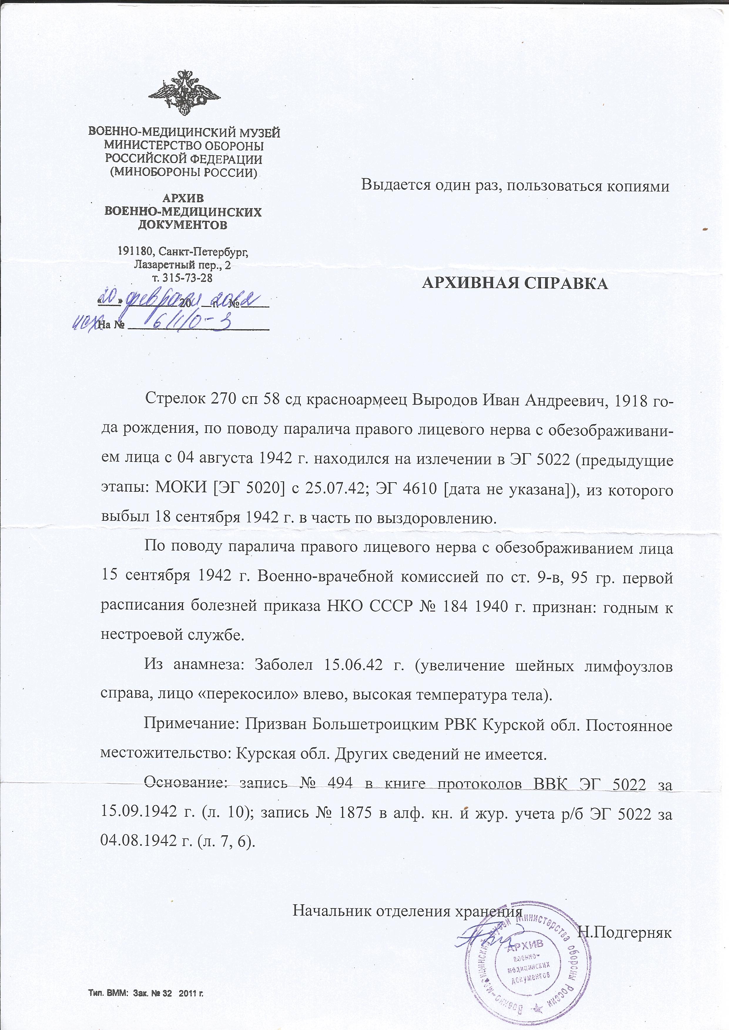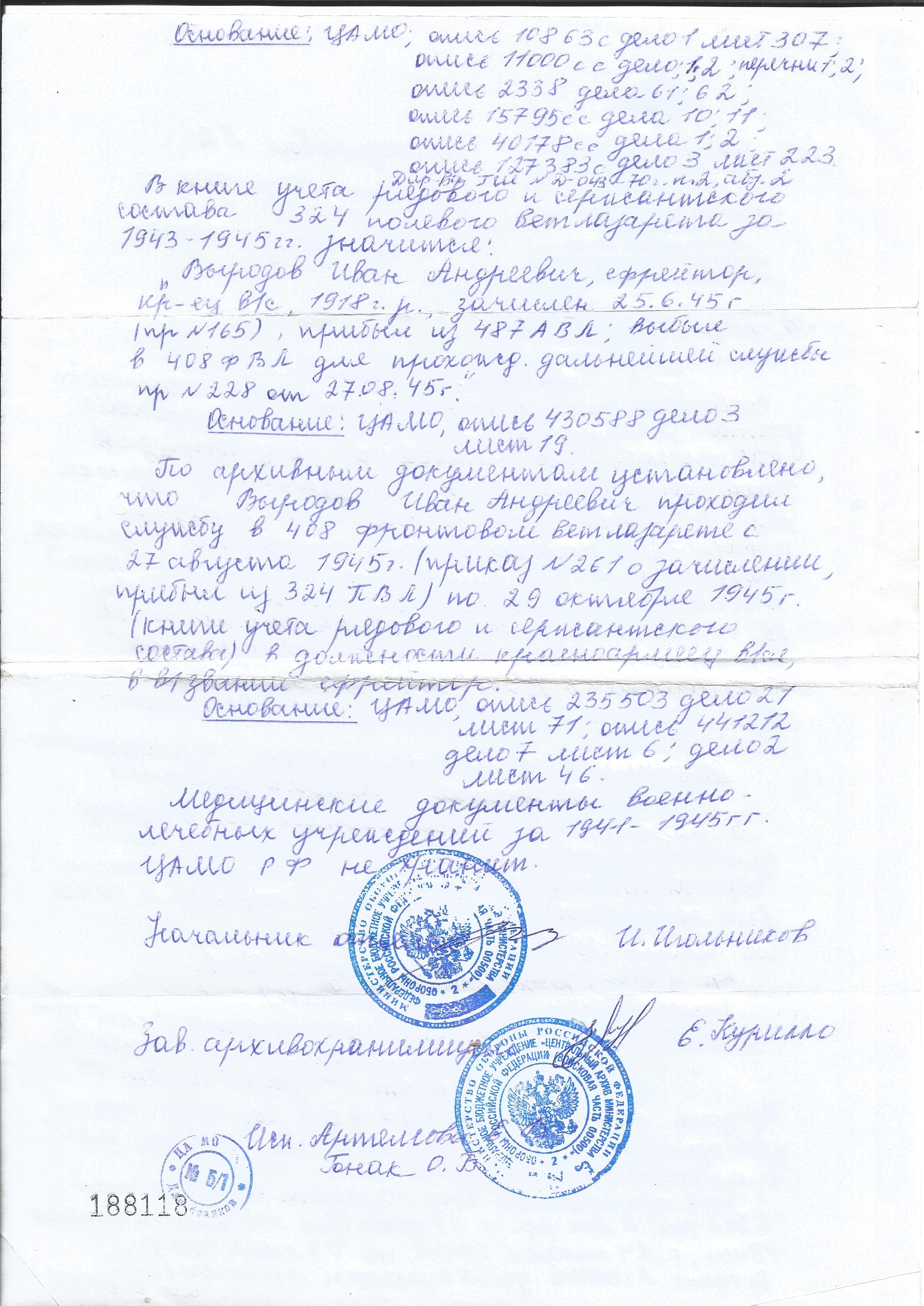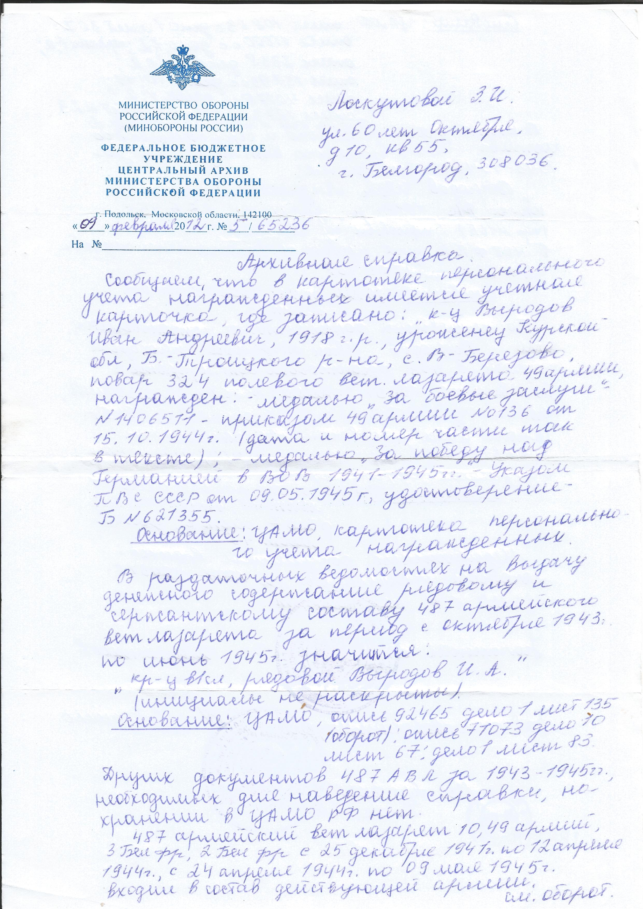 29 октября 1945 г. проходил службу в 408 фронтовом ветлазарете.