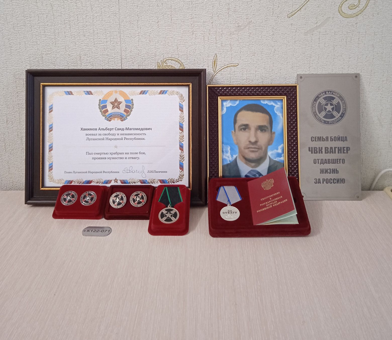 Мой сын родился в пос. Октябрьский Дергачёвского района Саратовской области 19.06.1977. Потом семья переехала в г. Аткарск Саратовской области. Доброволец СВО. Боец ЧВК «Вагнер». Стрелок пулемётного расчета «Корд», ШО 16, взвод 3. Позывной «КАТАР». Награжден медалью ЧВК ВАГНЕР, медаль «За Отвагу», значки, номер жетона, благодарственная грамота, металлическая пластинка «СЕМЬЯ БОЙЦА ЧВК ВАГНЕР, ОТДАВШЕГО ЖИЗНЬ ЗА РОССИЮ». Погиб при выполнении задания в с. Красная гора, пгт Парасковиевка под Бахмутом 29.11.2022.