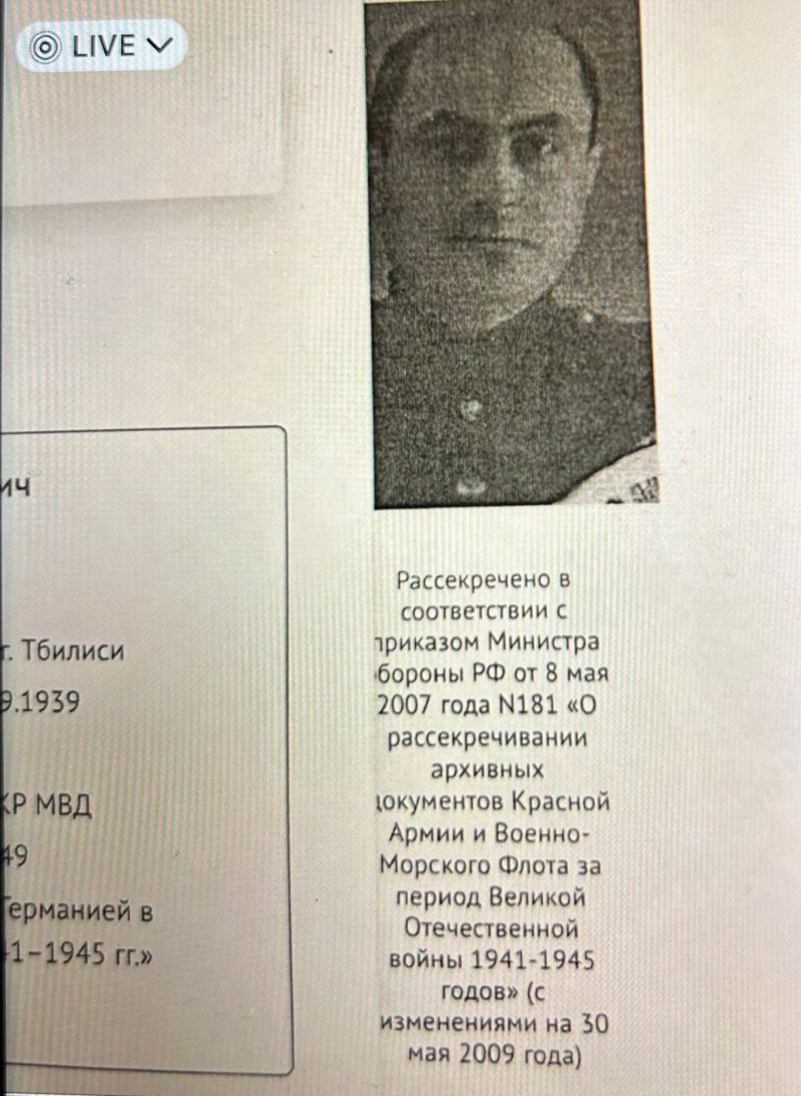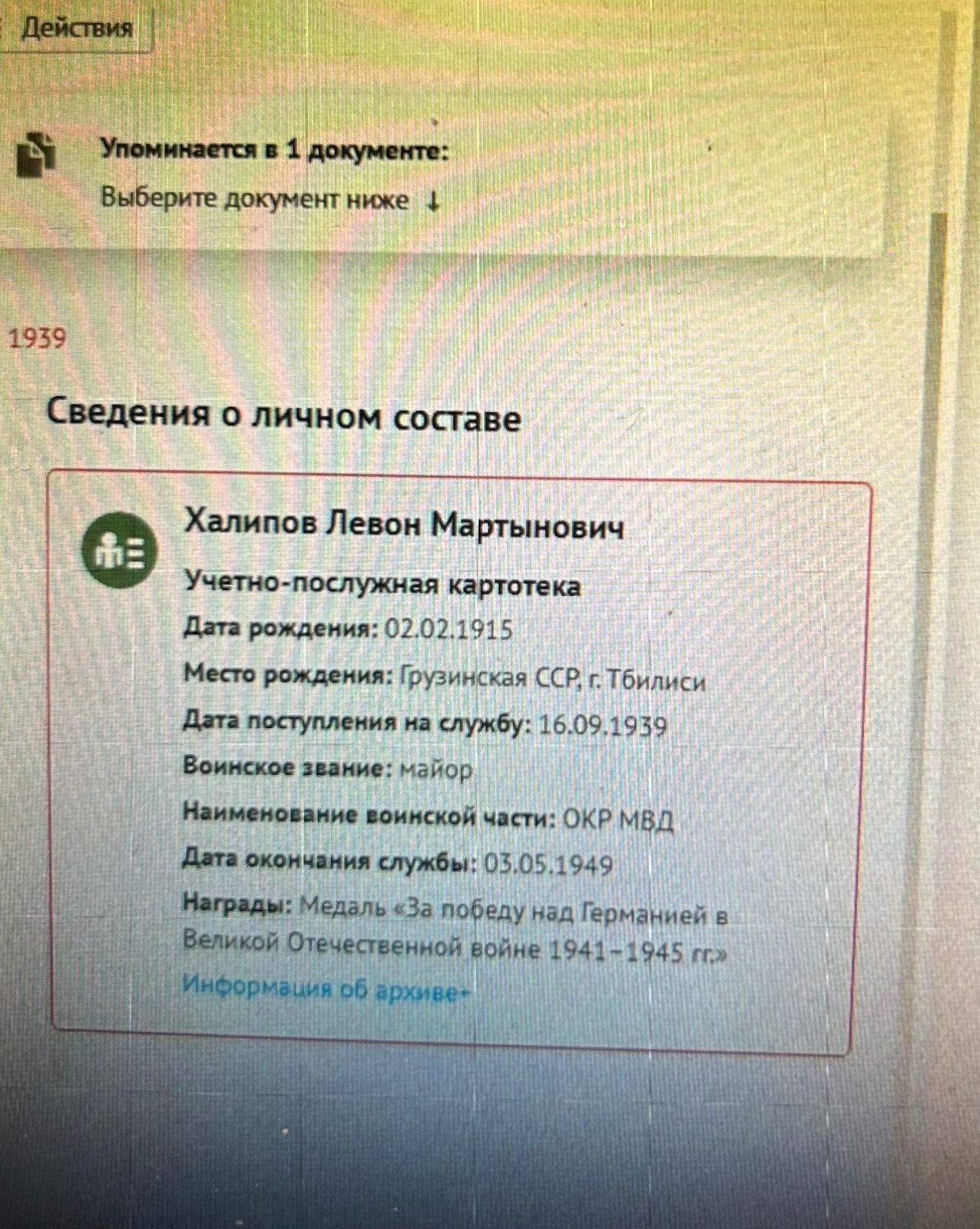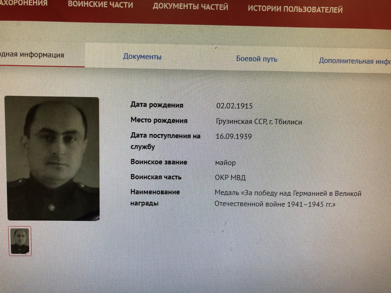 Призвался Грузинская ССР г. Тбилиси 16.09.1939 году. Демобилизовался 03.03.1949 году г. Москва