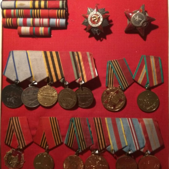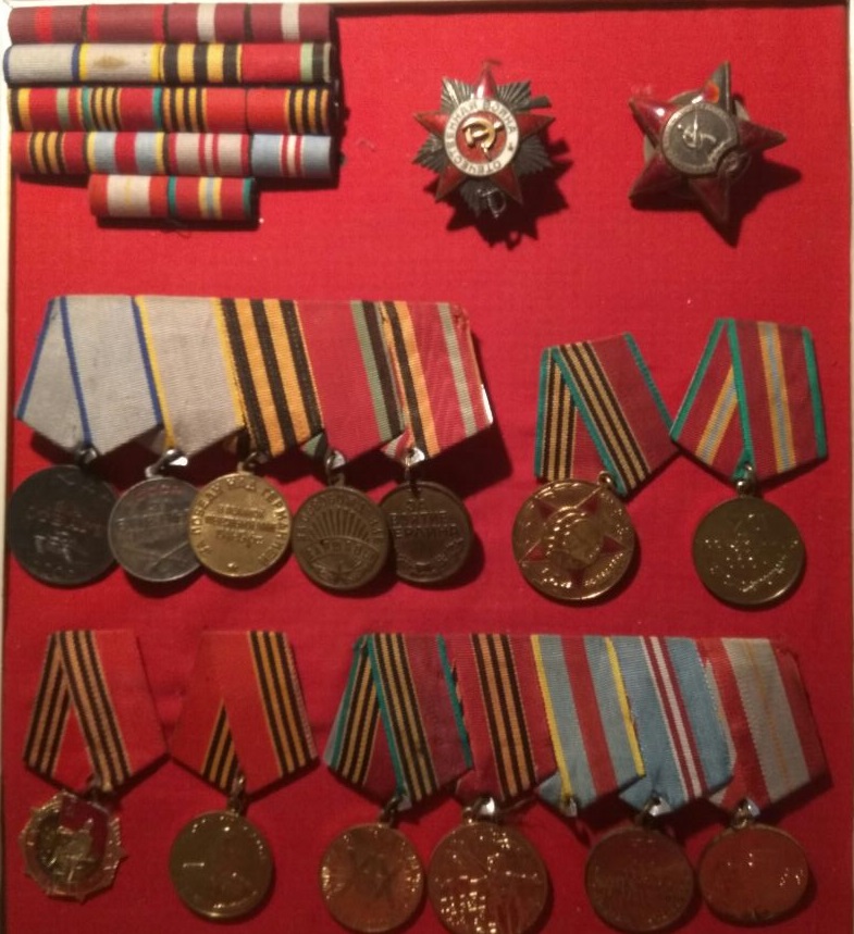 боевые заслуги» – получена за отличие в бою при форсировании реки Сож под Гомелем. Первый орден Красной Звезды – за бои под белорусскими Городами Рогачевым и Жлобиным. Вторая Красная Звезда - за Вислу. Орден Отечественной войны 2 степени – за бои на Зееловских высотах. Медали «За освобождение